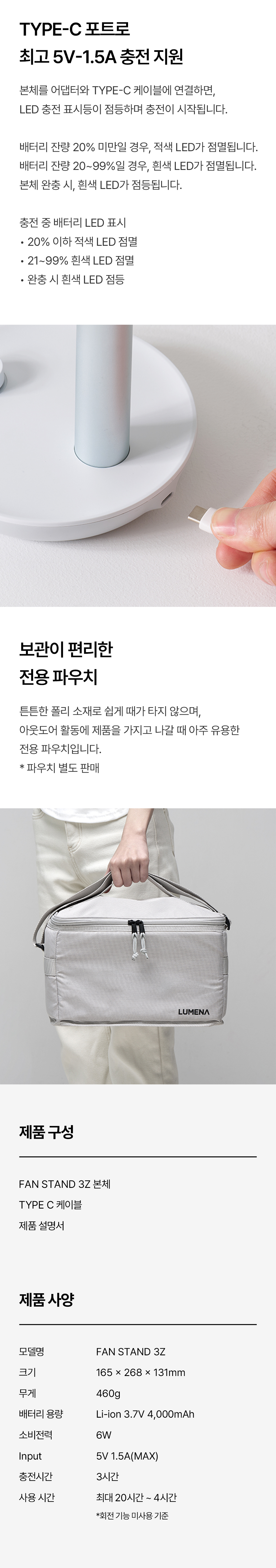 루메나 FAN STAND 3Z 탁상용 무선 선풍기 마일드 핑크