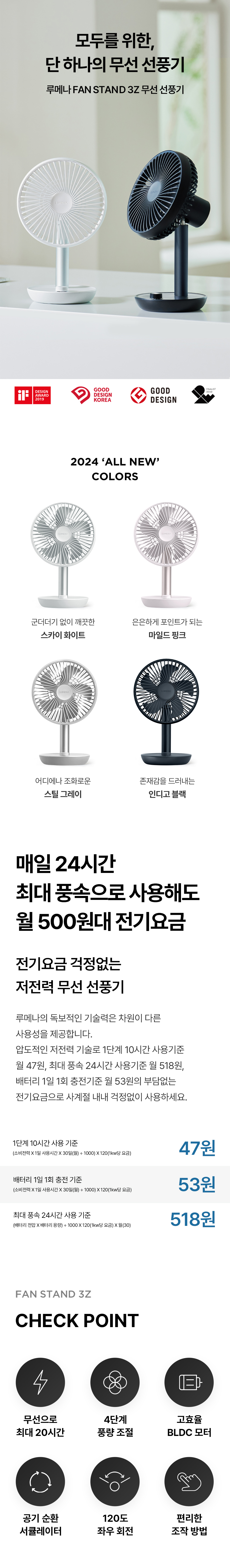 루메나 FAN STAND 3Z 탁상용 무선 선풍기 인디고 블랙