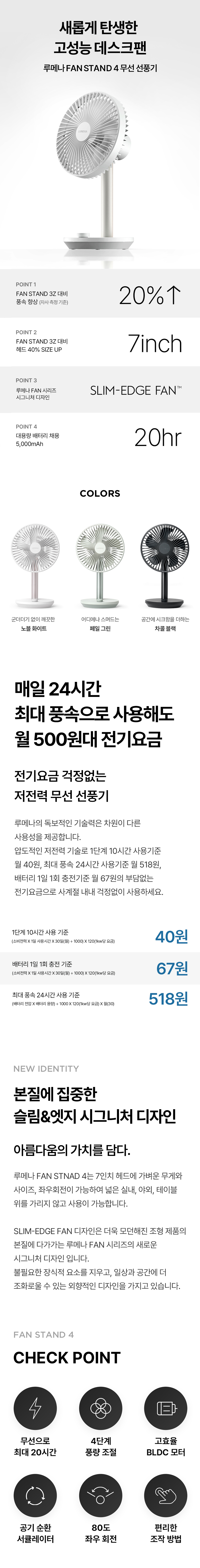 루메나 FAN STAND 4 프리미엄 무선 선풍기 페일 그린