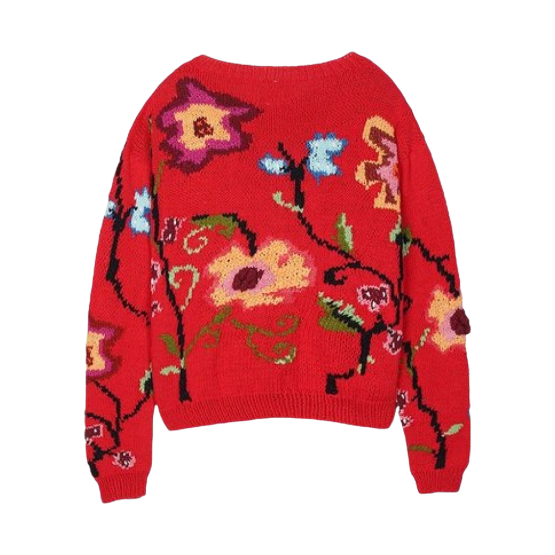 (W) Tach Kamba Hand Knitted Floral Cardigan Red