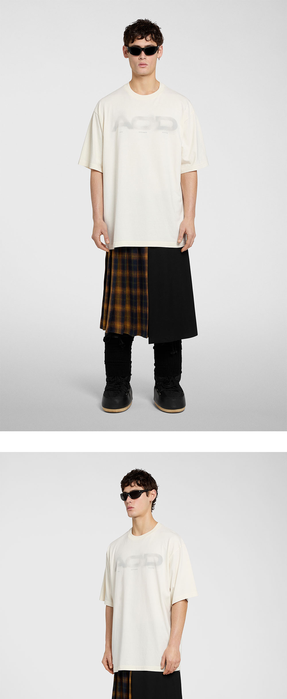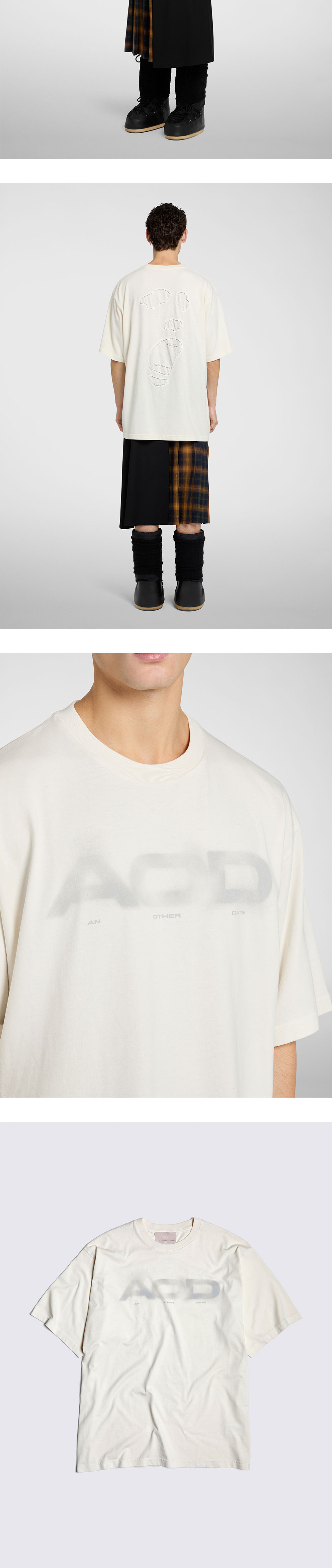 구름에 가려진 듯한 색감의 로고와 후면의 디스트레스드 심볼로 빈티지한 멋을 살린 AOD의 로고 프린트 코튼 티셔츠입니다. - 오버사이즈 핏 - 후면의 디스트레스드 심볼 디테일 - 수제 염색으로 인한 유니크한 디자인