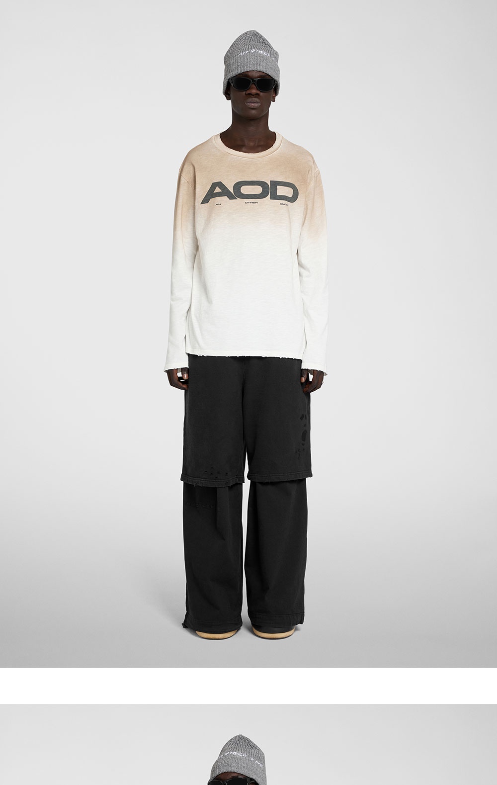아이코닉한 로고 디자인과 수제 염색으로 빈티지한 멋을 살린 AOD의 롱 슬리브 코튼 티셔츠입니다. - 오버사이즈 핏 - 후면의 AOD 심볼 그래픽 - 디스트레스드 디테일 마감