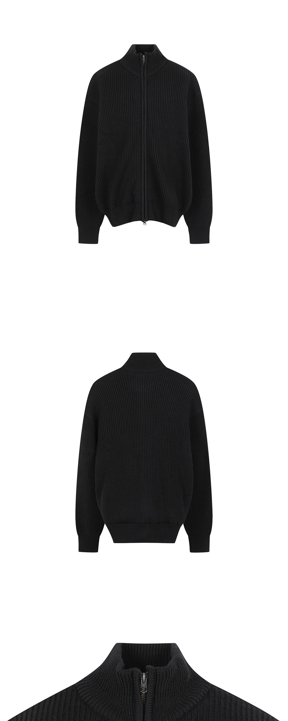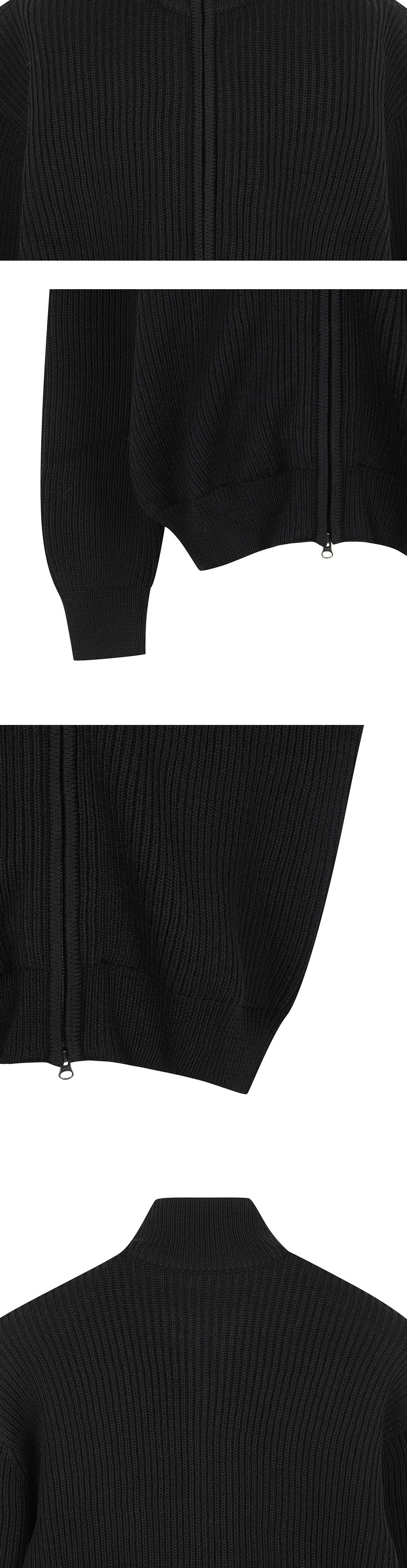 높은 울 함량의 원사를 사용하여 포근한 느낌을 주는 아모멘토의 니트 블루종 가디건입니다. - 여유로운 실루엣 - 2-WAY 지퍼 사용 - 텍스쳐가 있는 립 조직의 편직으로 제작됨