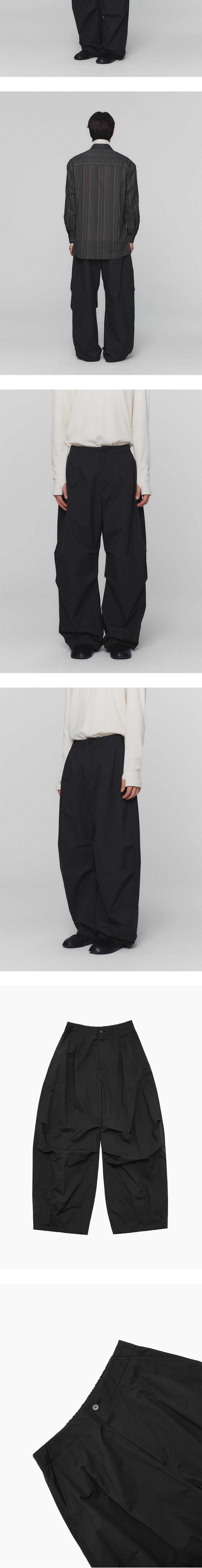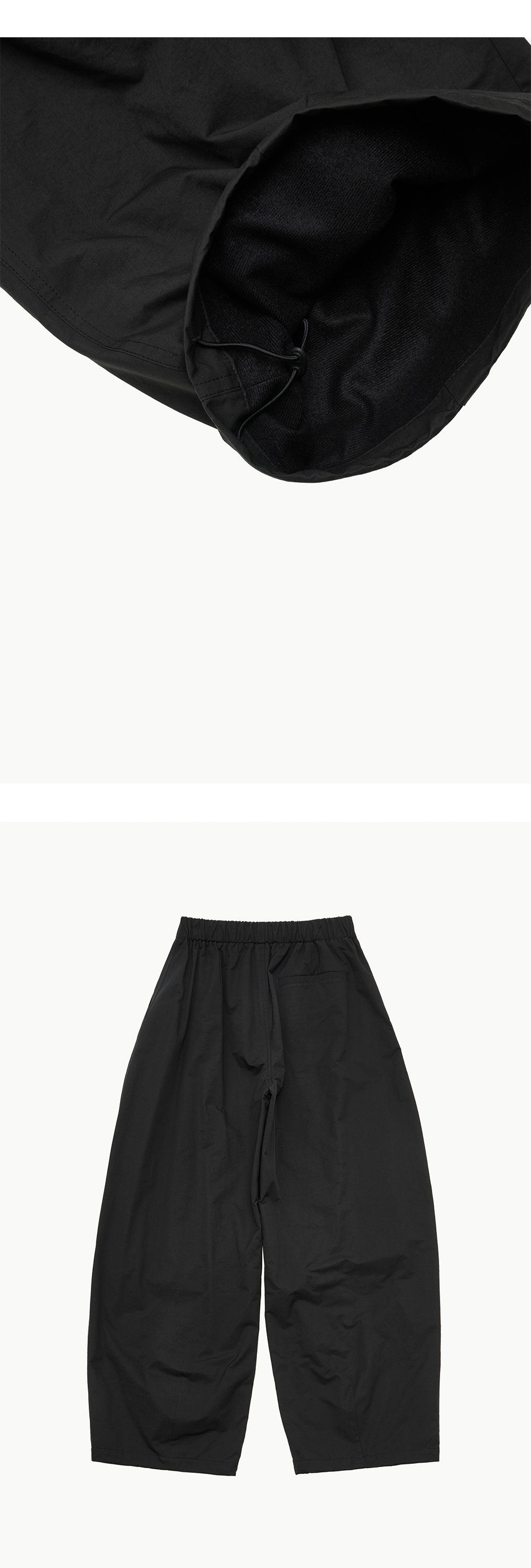 코튼 나일론 소재의 볼륨감 있는 실루엣을 연출하는 아모멘토의 퍼티그 팬츠입니다. - 뒷 오비 밴딩 마감 - 무릎 다트 디테일 - 밑단 스트링 & 스토퍼 조절 - 기모 소재 안감 처리