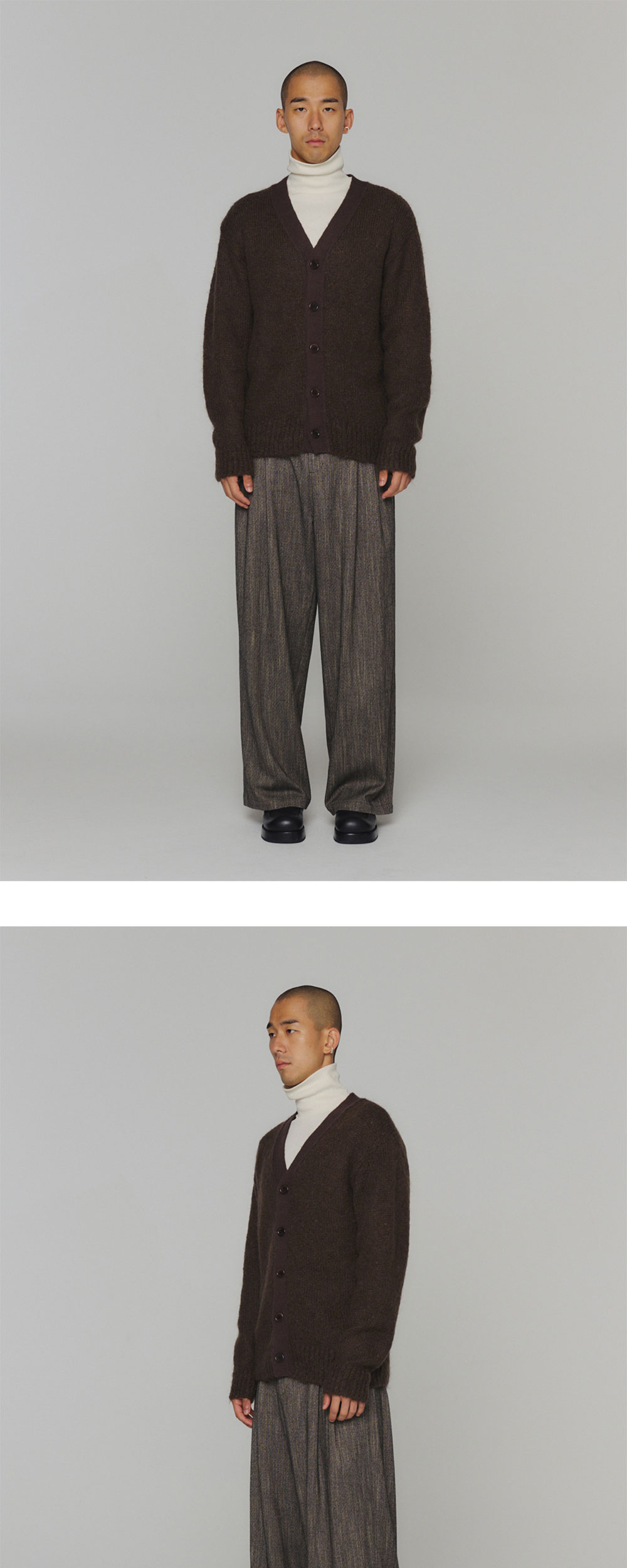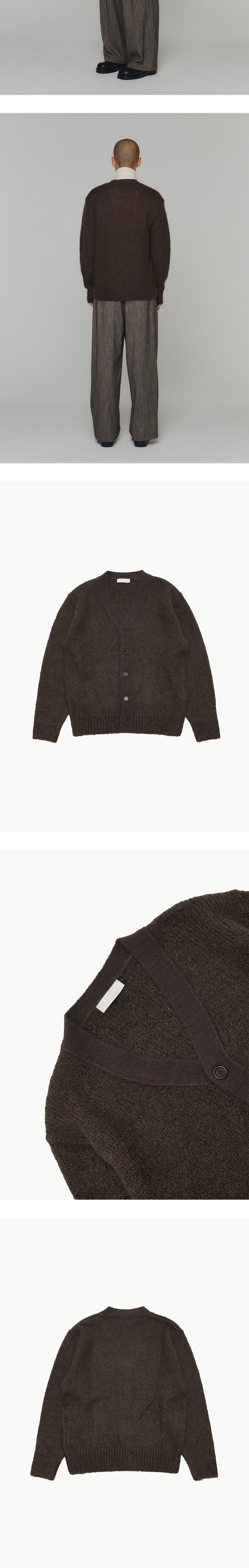 부드러운 텍스처와 질감을 살린 헤어리한 원사를 사용해 포근한 무드가 느껴지는 아모멘토의 가디건입니다. - 시그니처 아이템인 그랜마 가디건의 맨즈 버전 - 풍부한 헤어감의 익스클루시브로 개발된 원사 사용 - 여유있는 실루엣 - 뛰어난 보온성