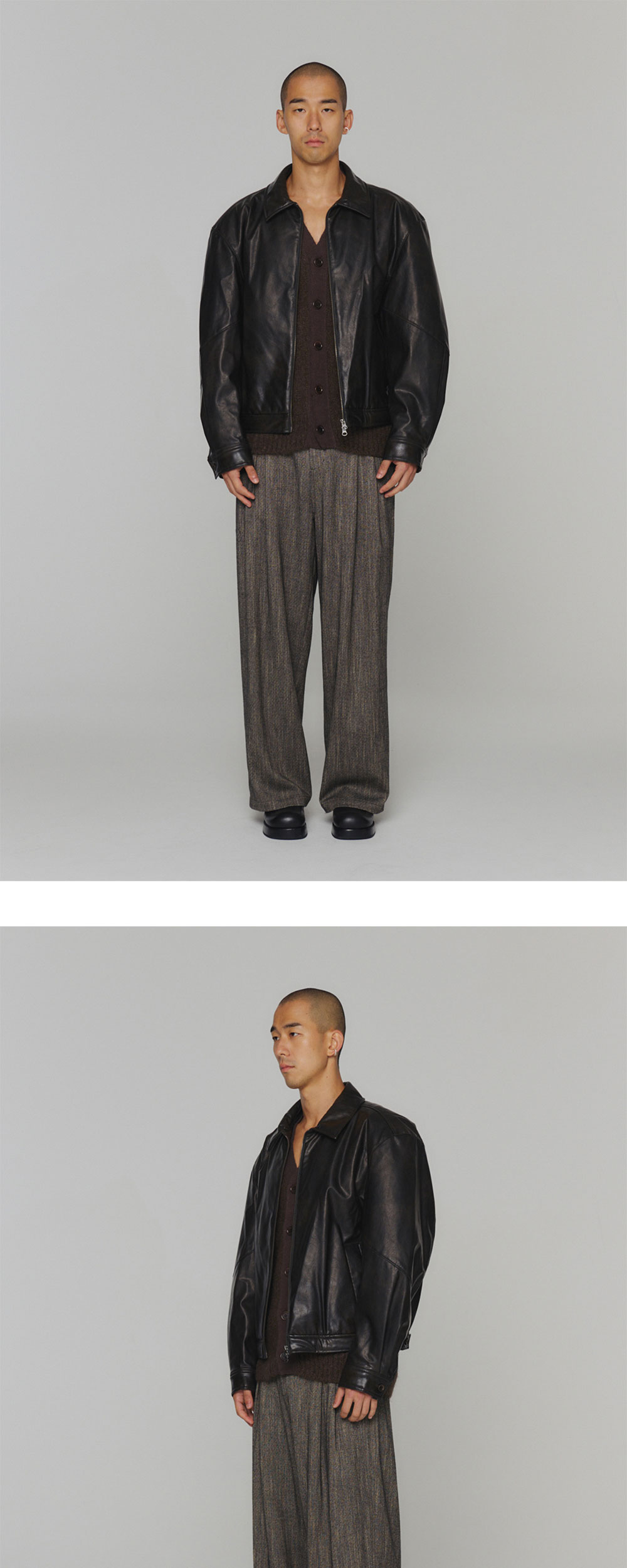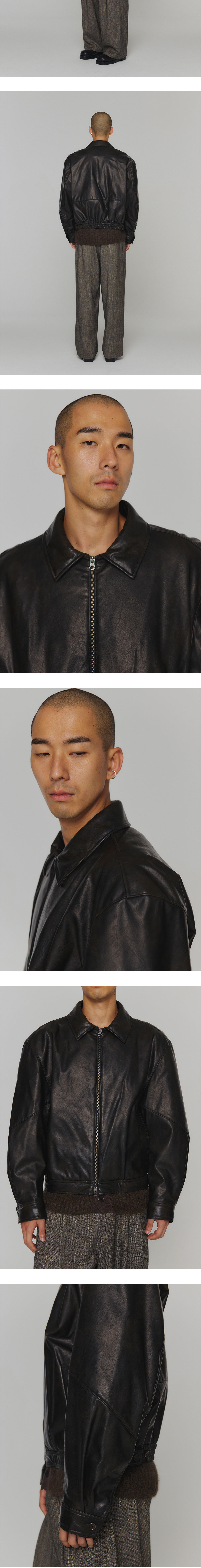 페이크 레더를 사용한 아모멘토의 오버사이즈 레더 점퍼입니다. - 비건 레더 - 간절기에 적합한 하스솜 2온스 패디드 - 소매 삼각절개 디자인 디테일 - 뒤 밑단 밴딩 및 비죠로 사이즈 조절 가능 - 앞 지퍼 여밈