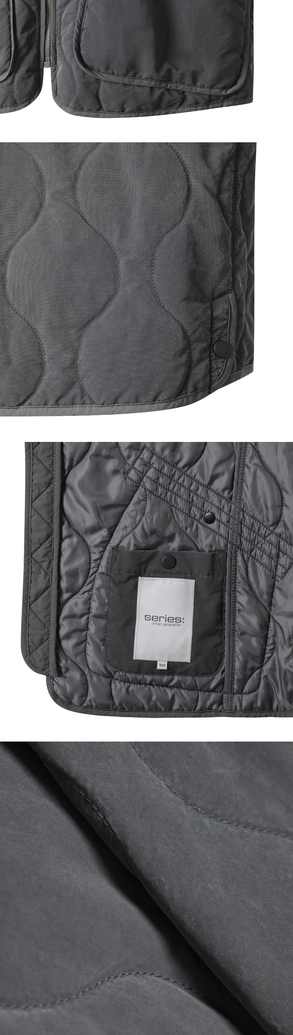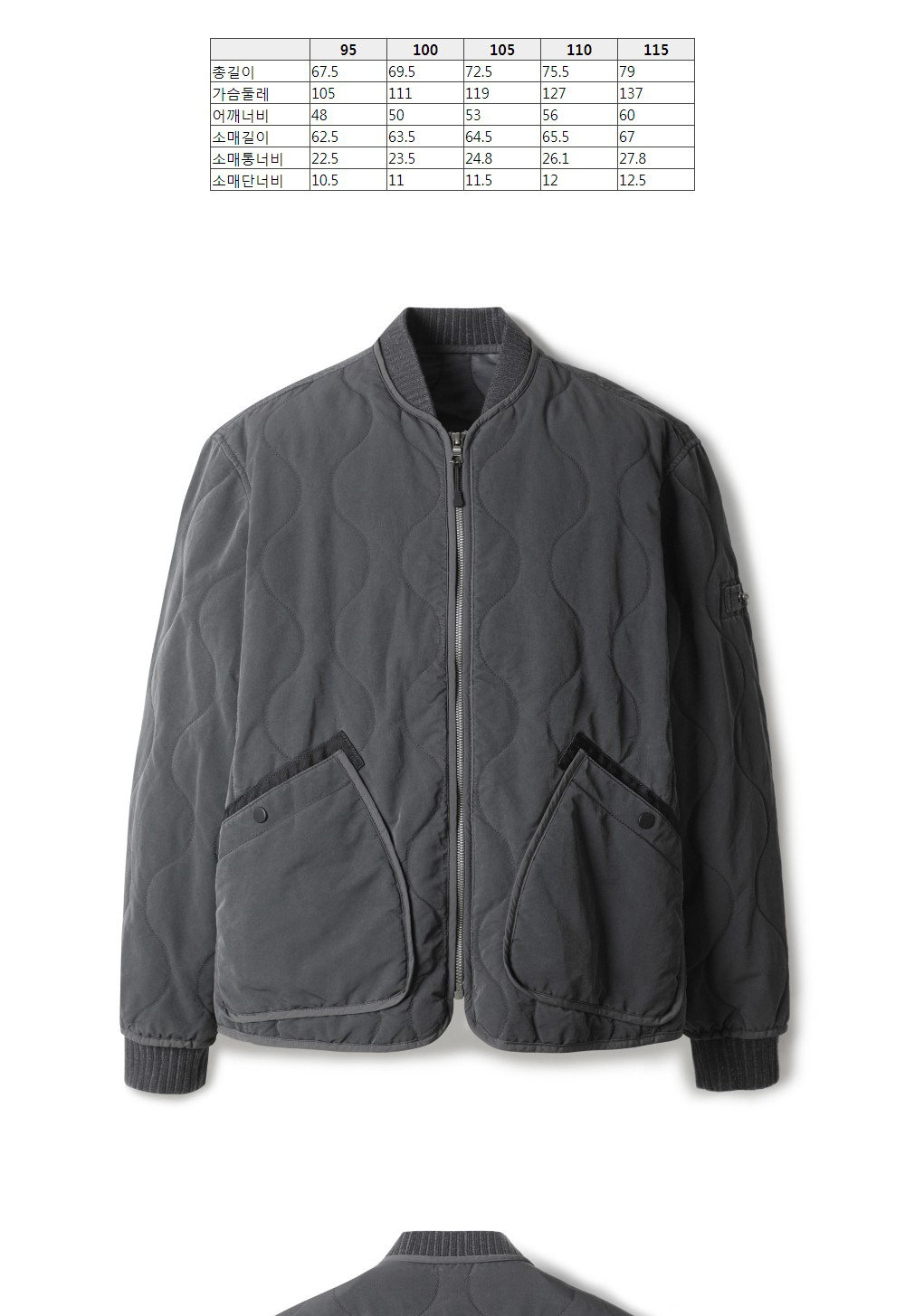 시리즈 유틸리티 피그먼트 워싱 퀼팅 점퍼 다크 차콜