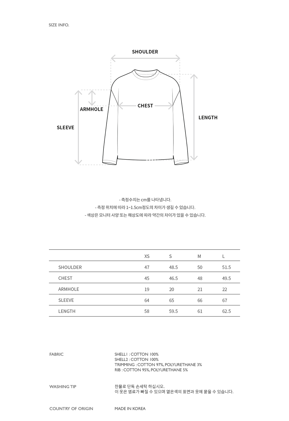 | 총장 | 어깨너비 | 가슴너비 | 암홀 | 소매길이 |