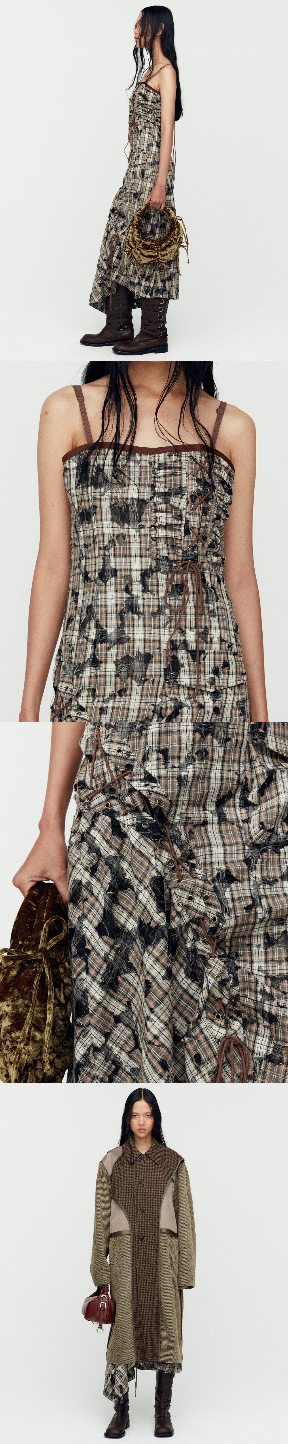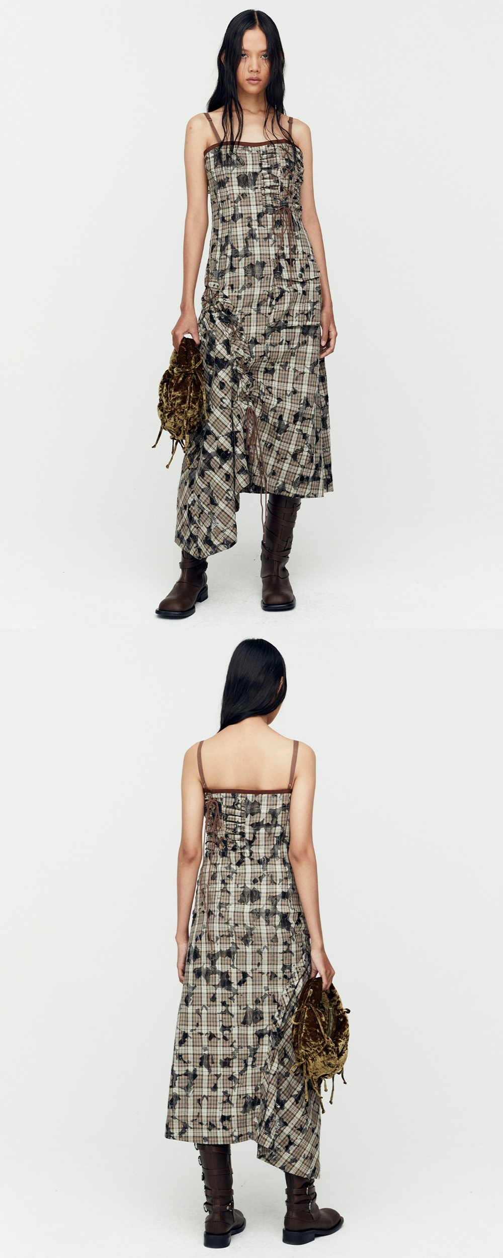 ADSB 앤더슨벨 마이시 번트 아웃 체크 드레스 베이지