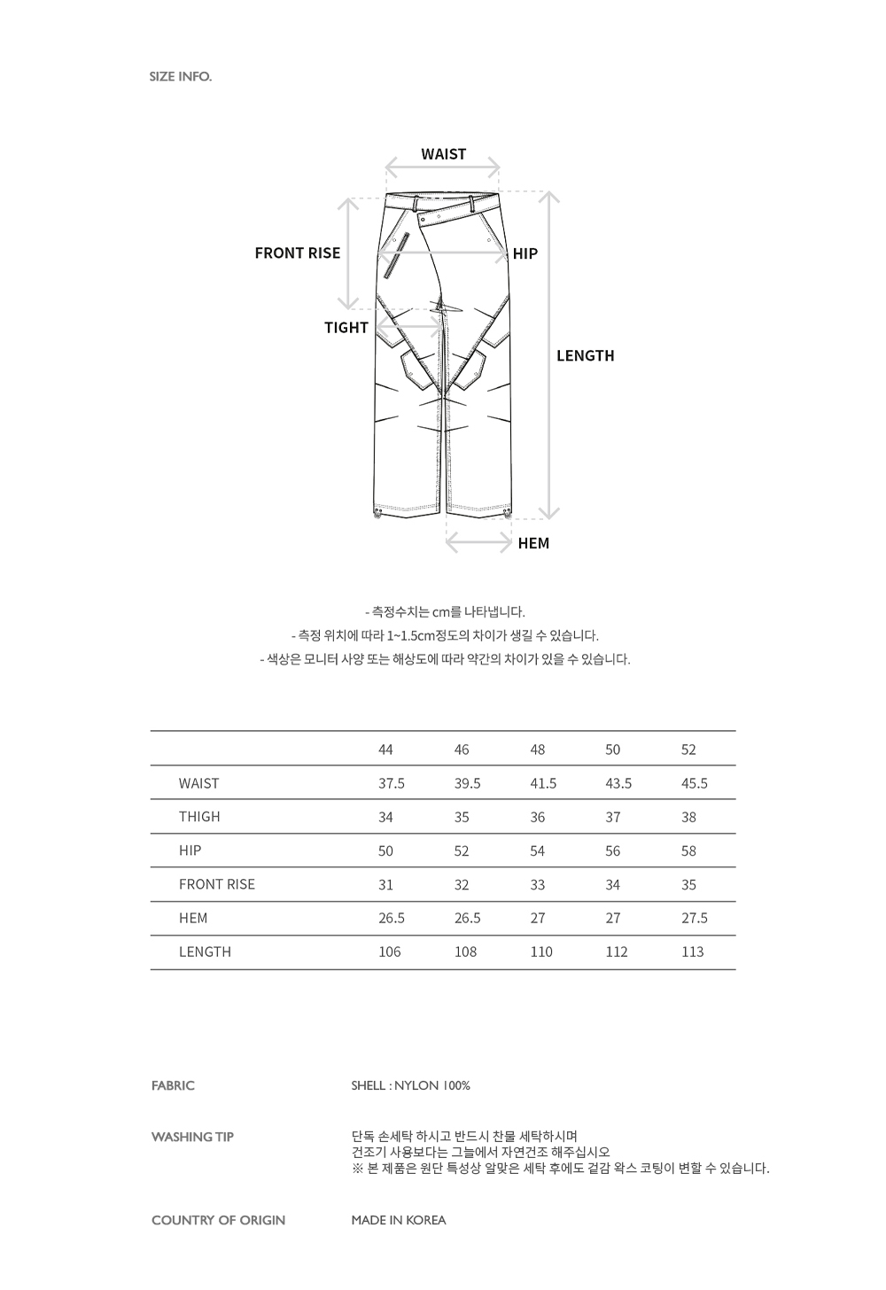 | 총장 | 허리 | 허벅지 | 힙 | 밑위 | 밑단 |
