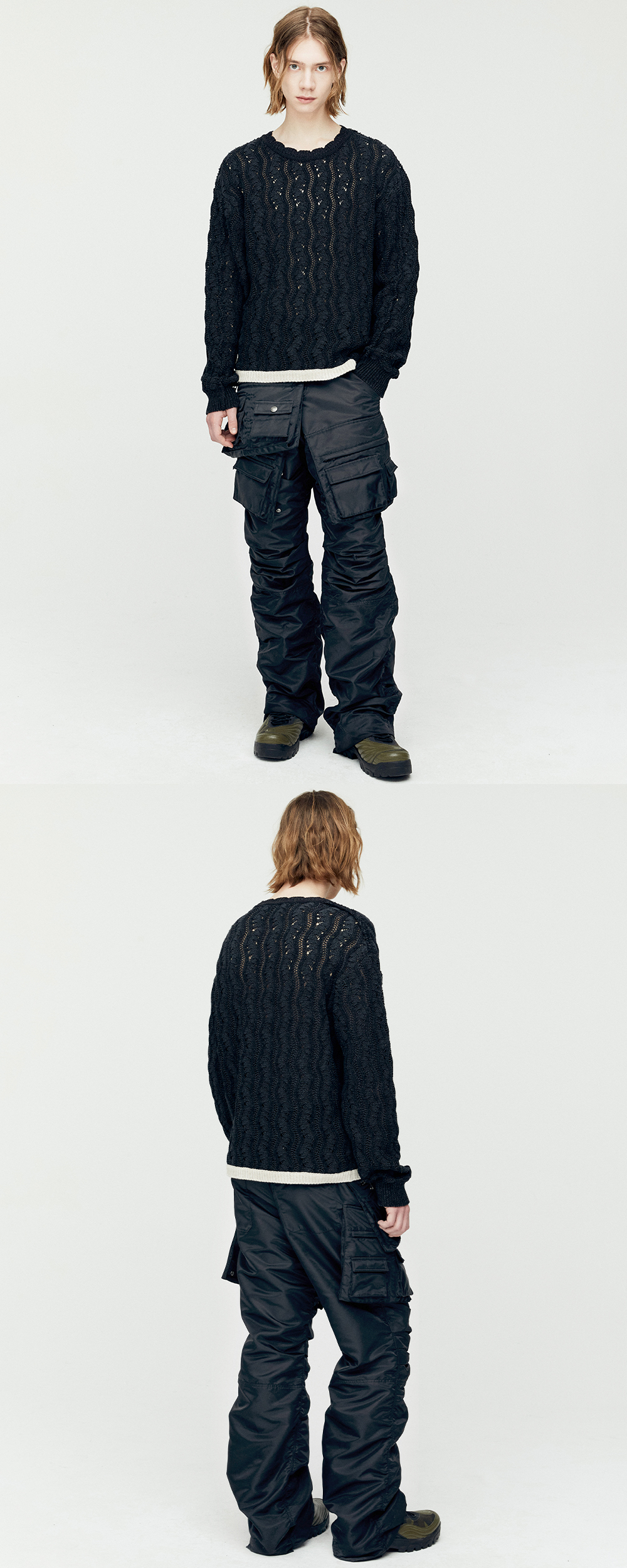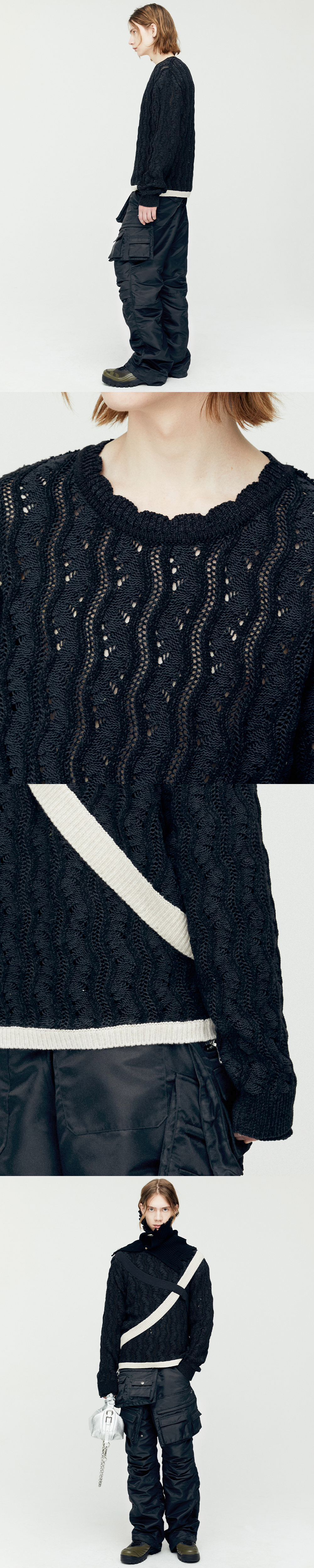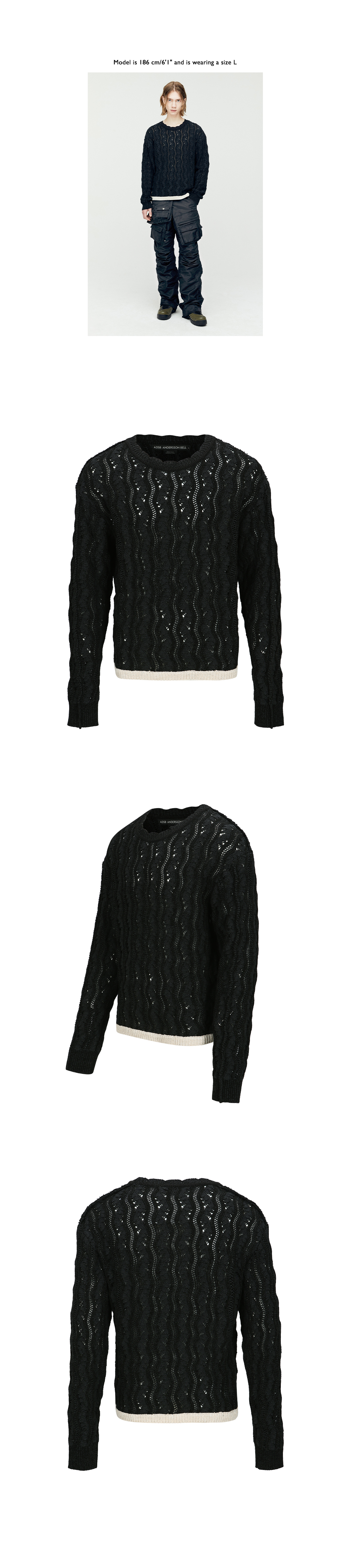 ADSB 앤더슨벨 투 톤 웨이브 크루넥 스웨터 블랙