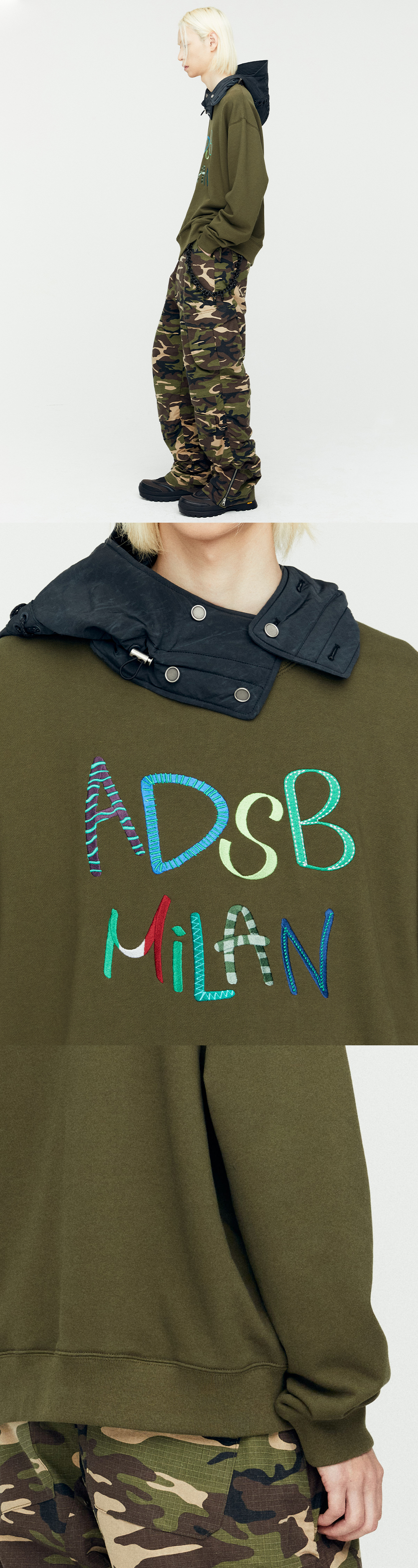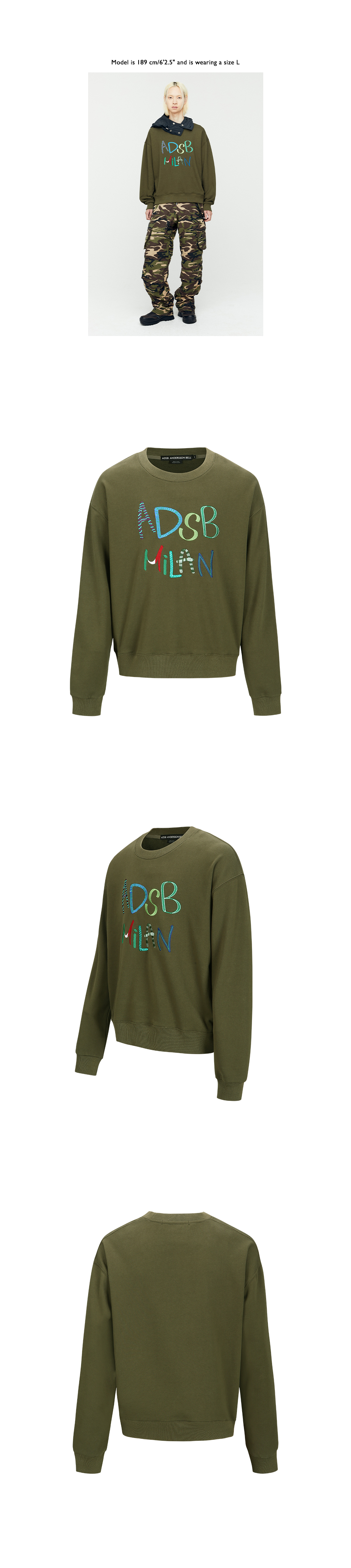 ADSB 앤더슨벨 에센셜 유니섹스 ADSB 밀란 엠브로이더리 스웨트셔츠 카키