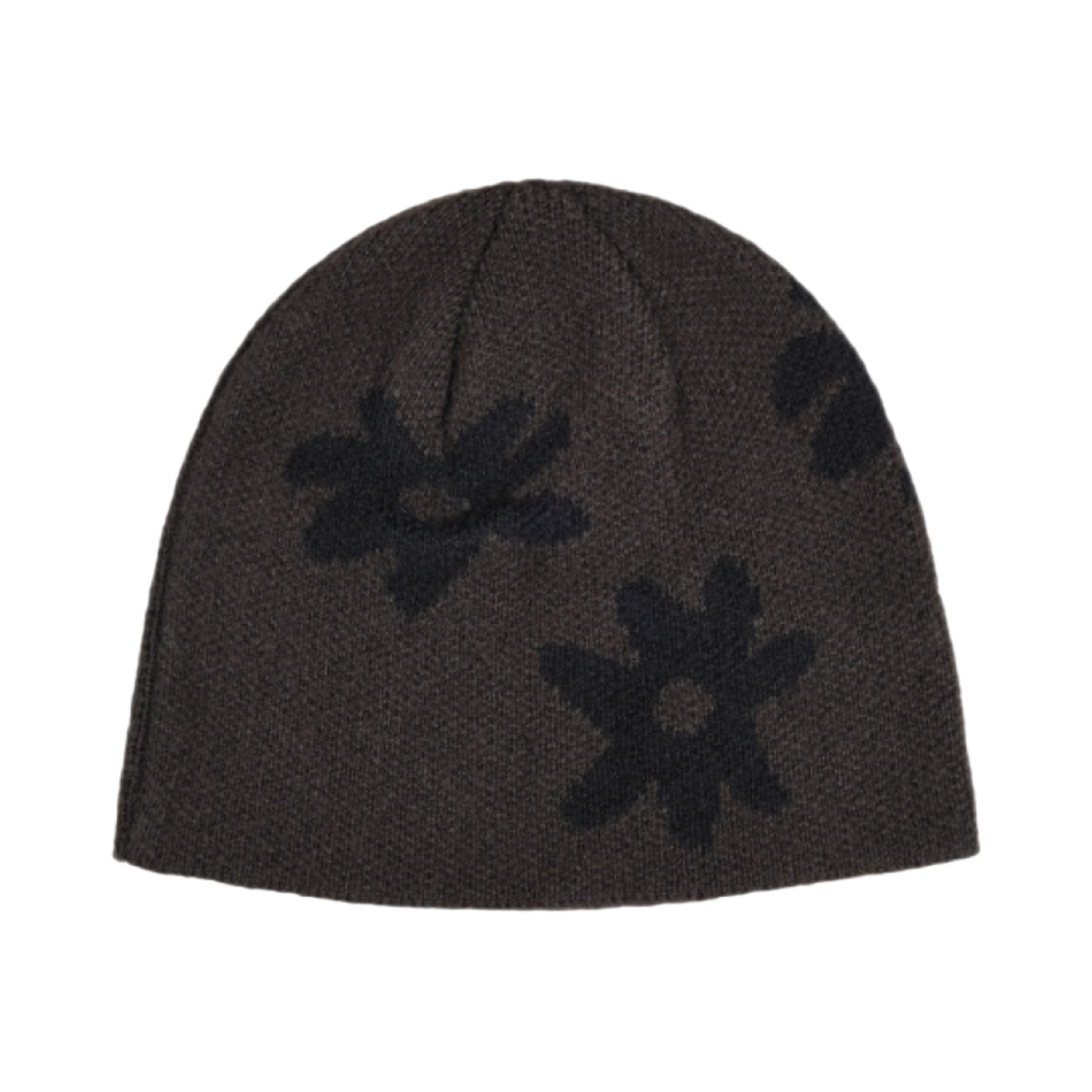 Aeae Mohair Jacquard Flower Beanie Dark Brown