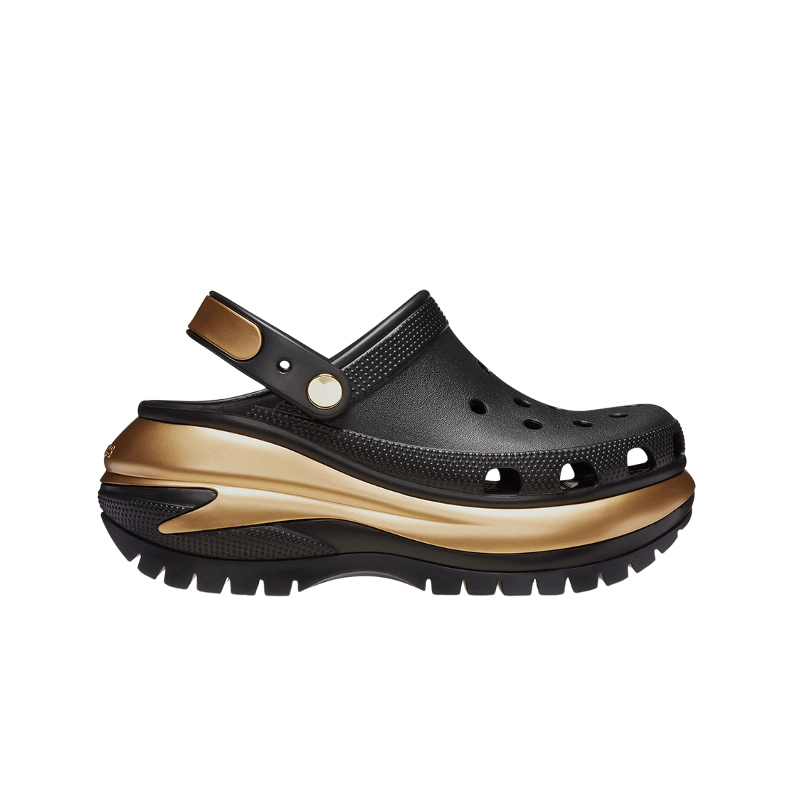 크록스 메가 크러쉬 메탈릭 클로그 블랙 골드