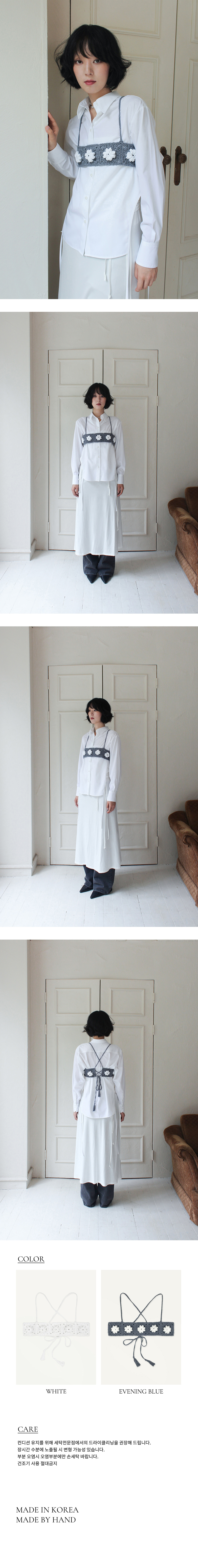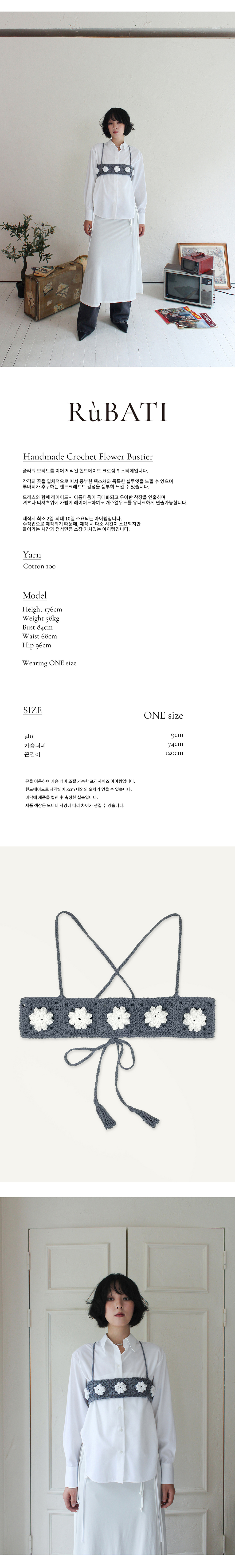루바티 핸드메이드 크로쉐 플라워 뷔스티에 이브닝 블루