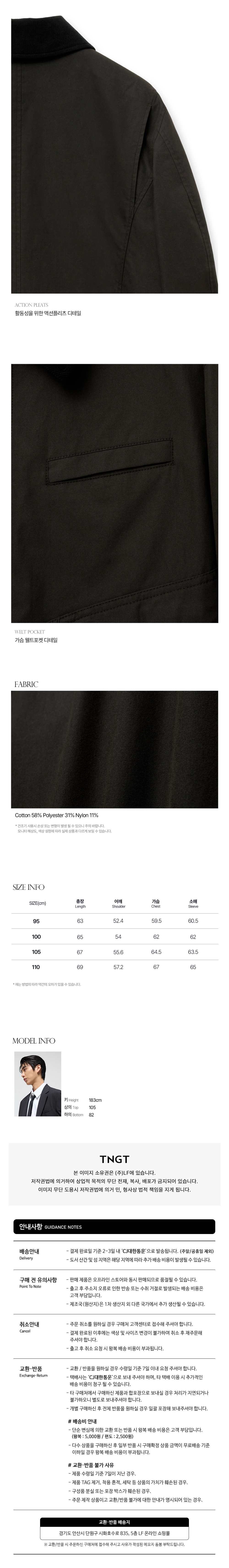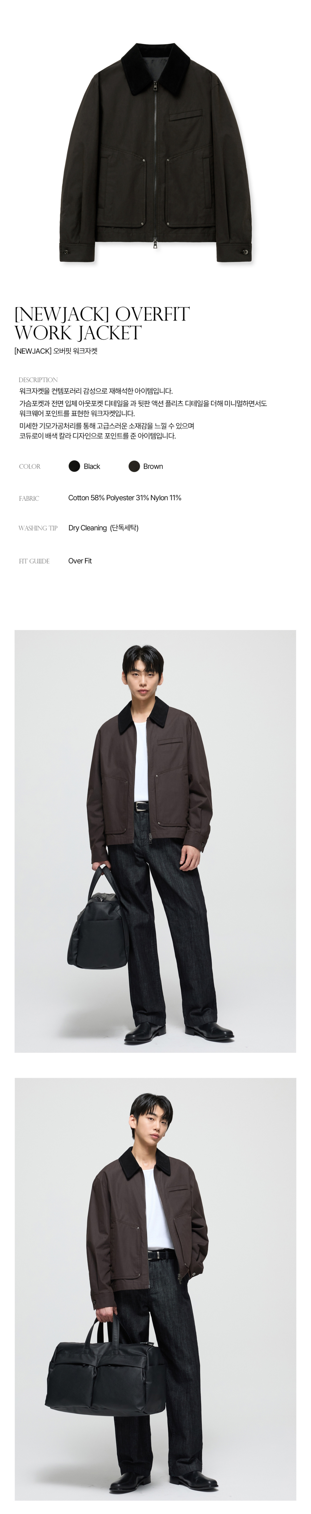 티엔지티 뉴잭 오버핏 워크자켓 브라운