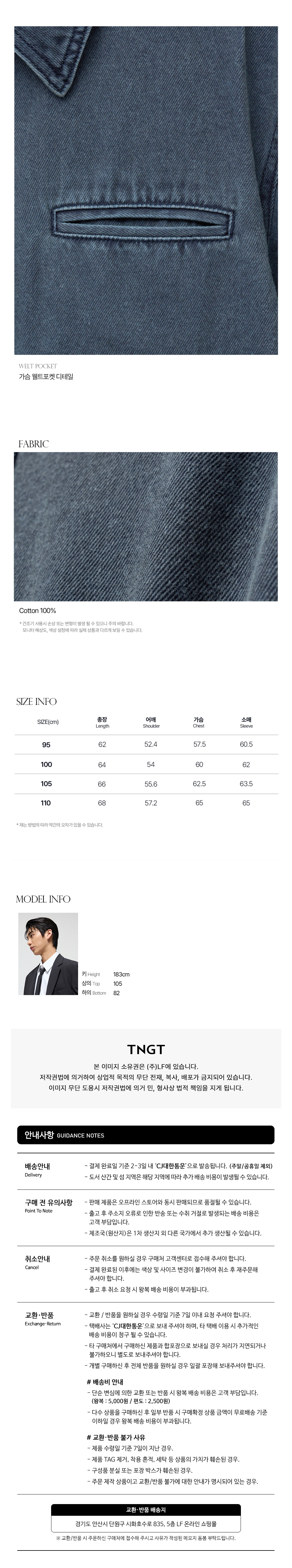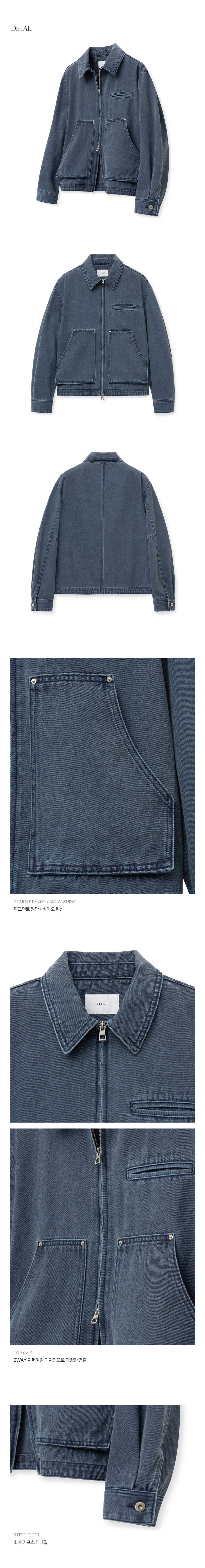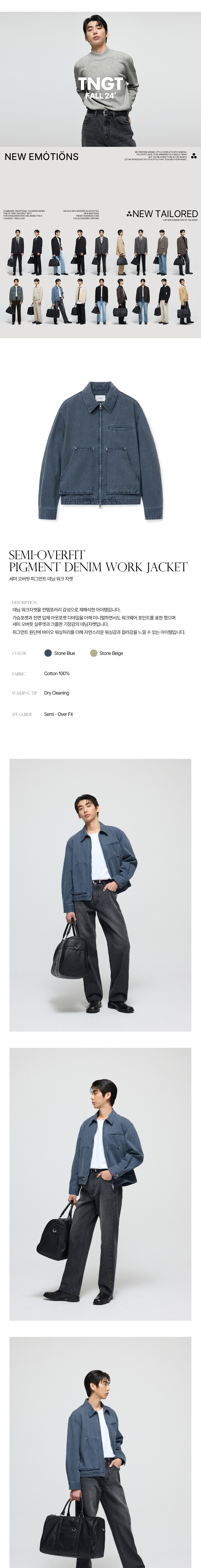 티엔지티 세미 오버핏 피그먼트 데님 워크자켓 블루