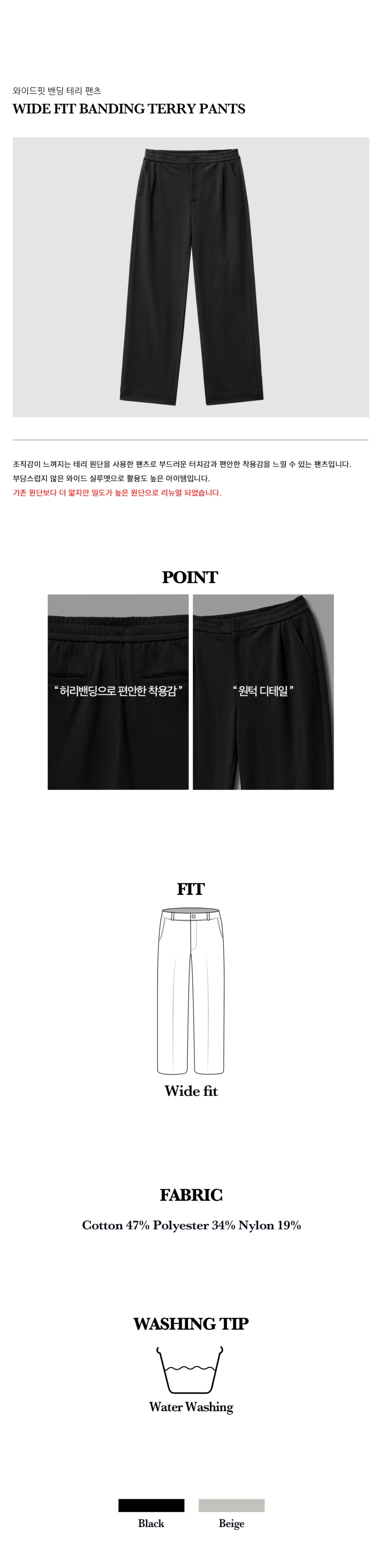 티엔지티 와이드핏 밴딩 테리 팬츠 블랙