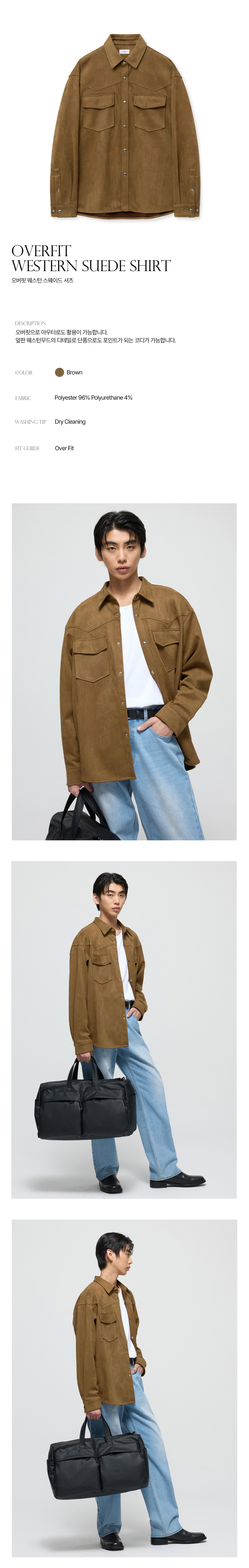 티엔지티 오버핏 웨스턴 스웨이드 셔츠 브라운