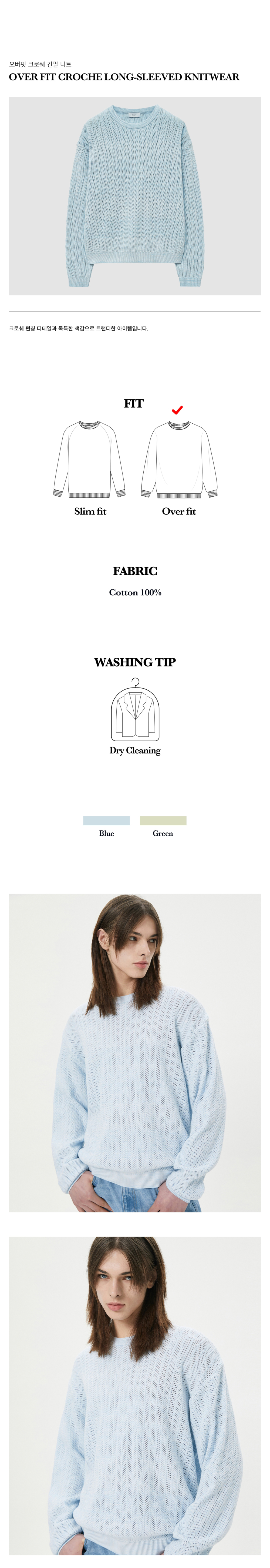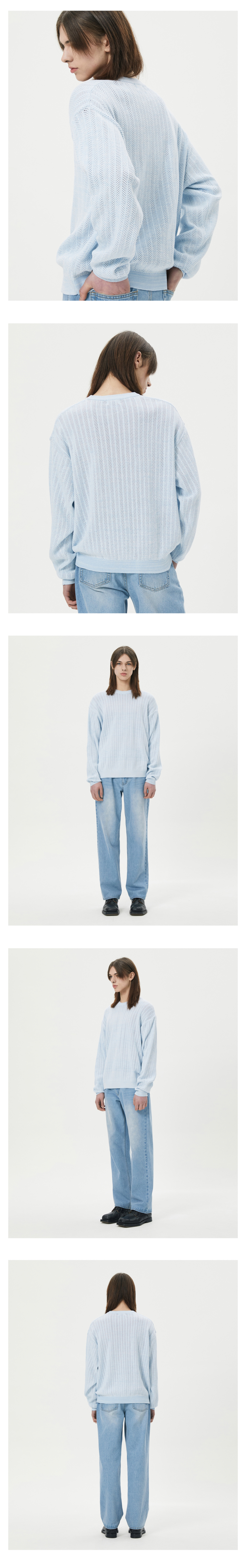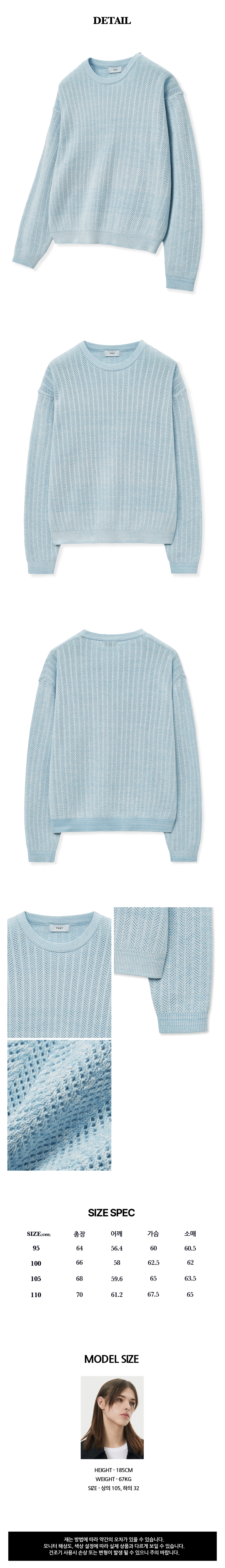 티엔지티 오버핏 크로쉐 긴팔 니트 블루