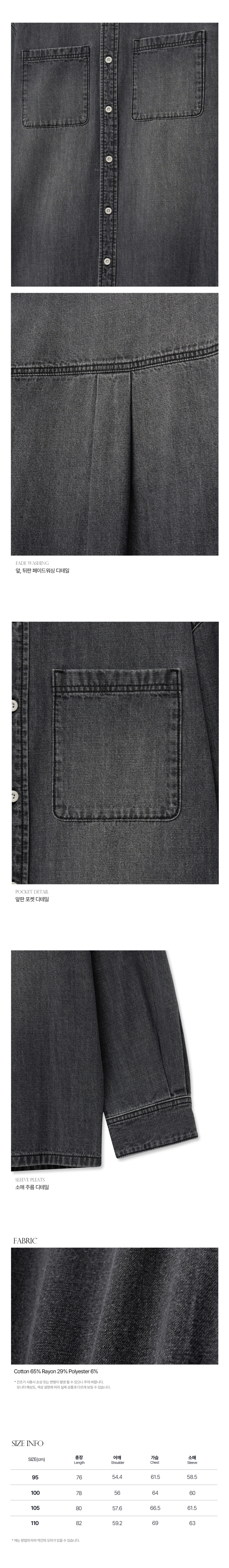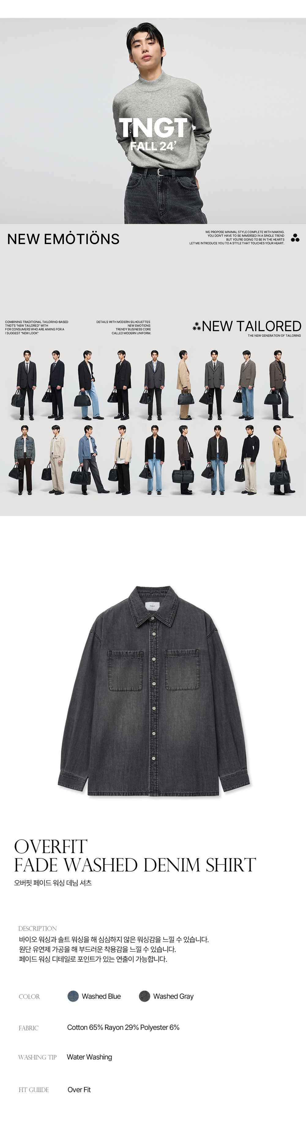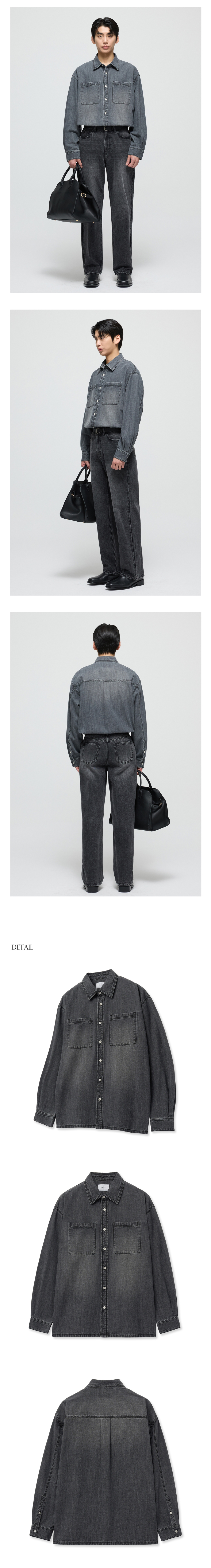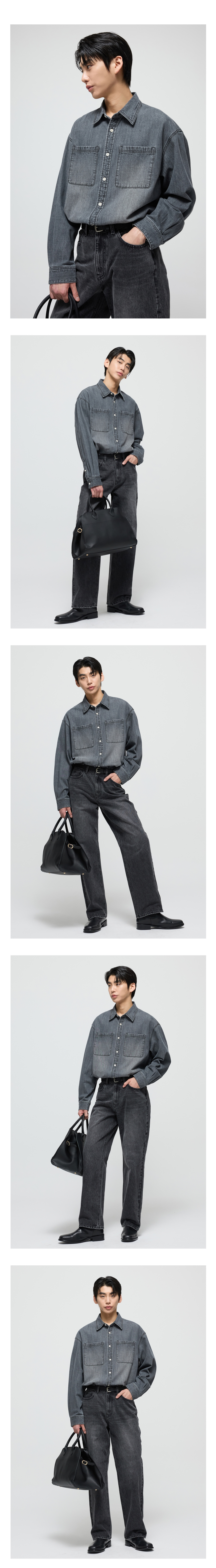 티엔지티 오버핏 페이드 워싱 데님 셔츠 워시드그레이