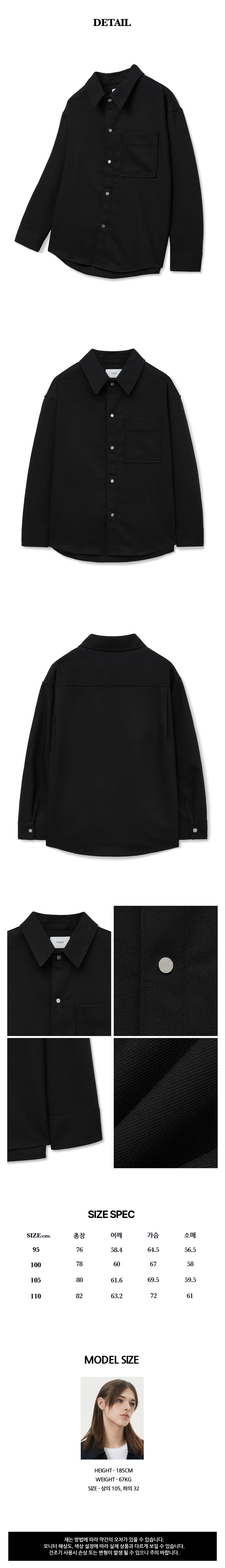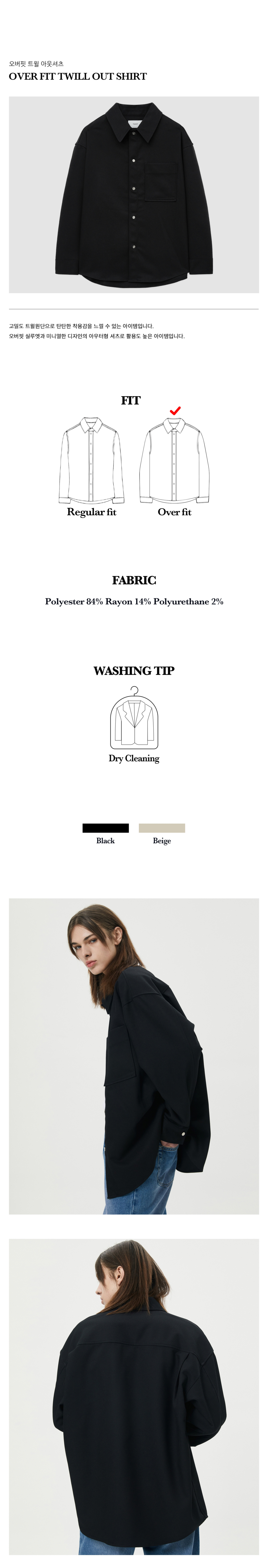 티엔지티 오버핏 트윌 아웃셔츠 블랙