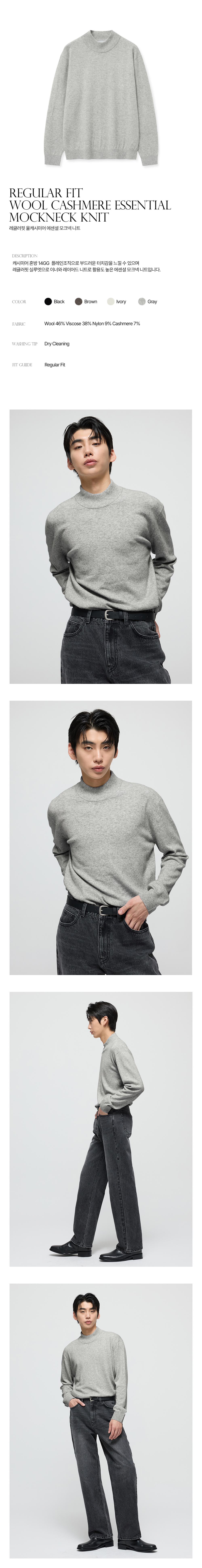 티엔지티 레귤러핏 울캐시미어 에센셜 모크넥 니트 그레이