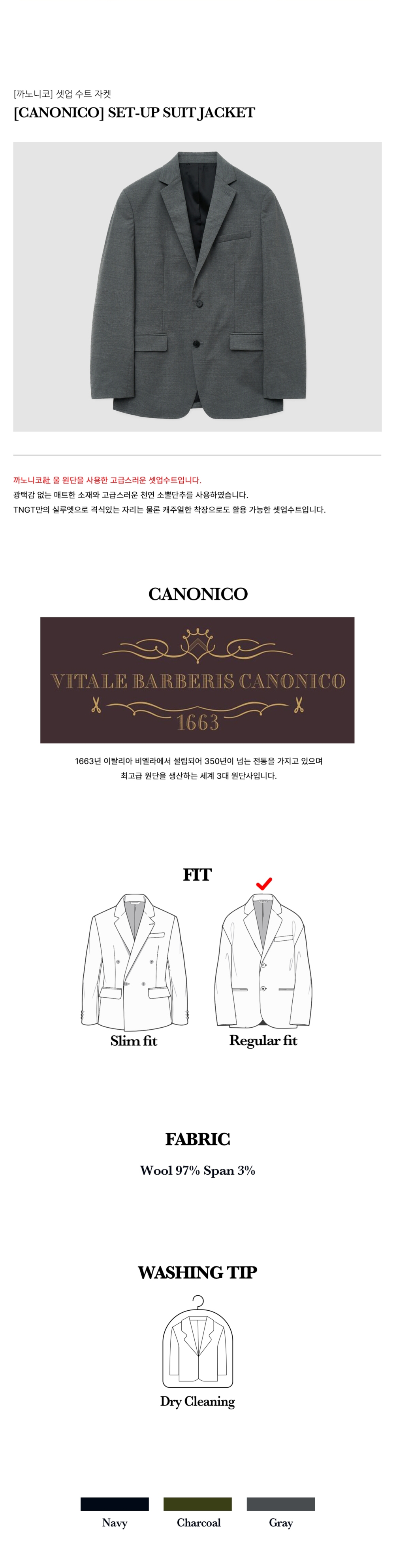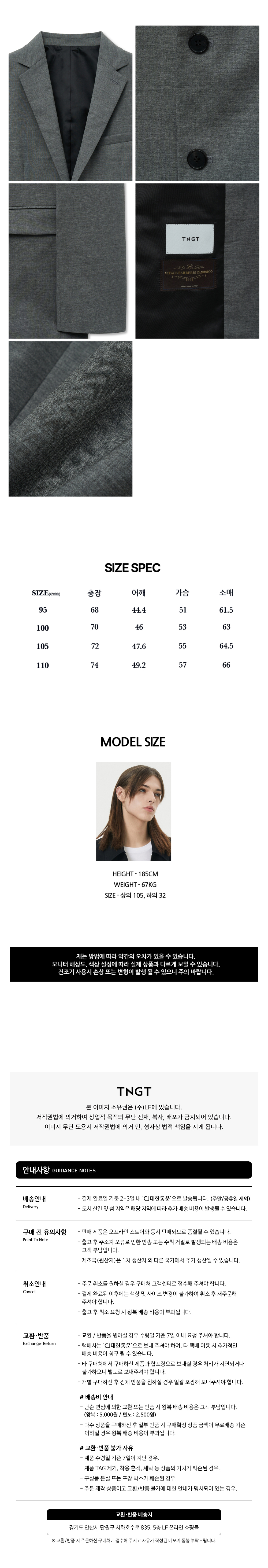 티엔지티 셋업 수트 자켓 그레이