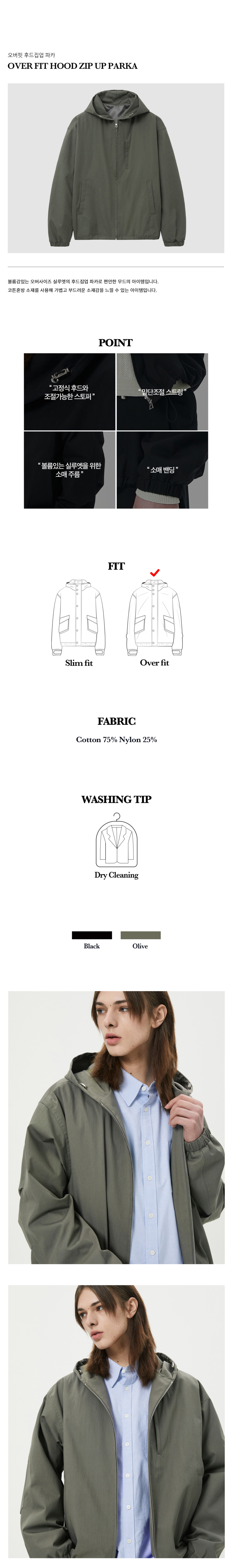 티엔지티 오버핏 후드집업 파카 올리브