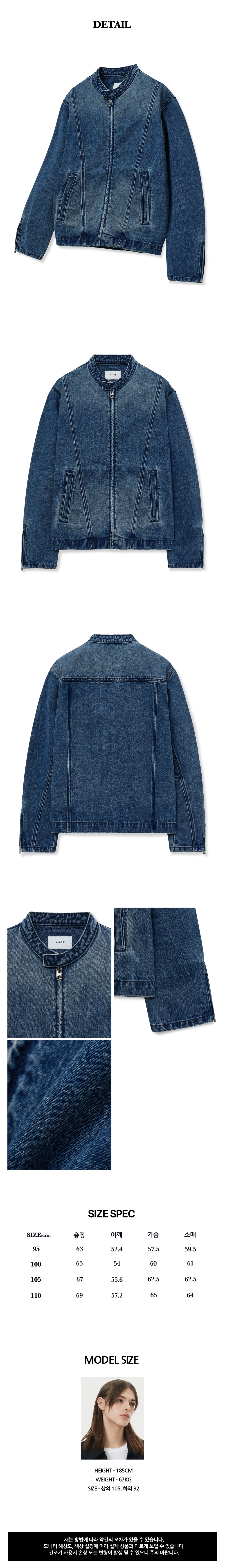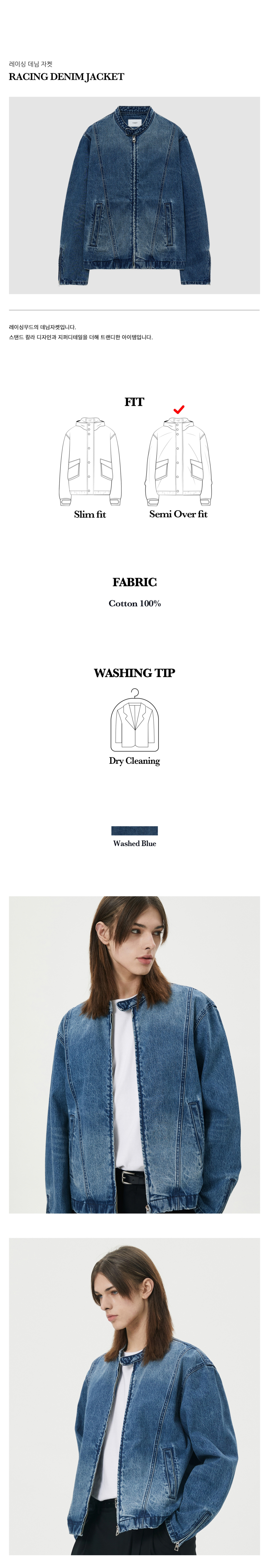 티엔지티 레이싱 데님자켓 워시드 블루