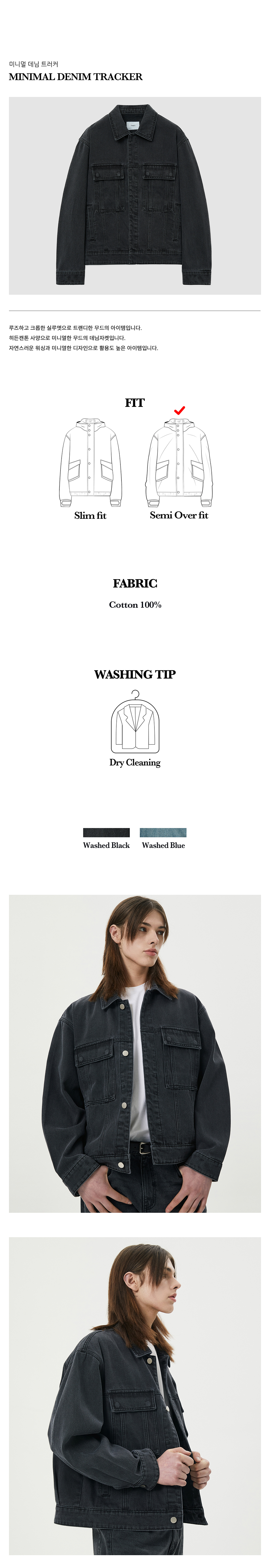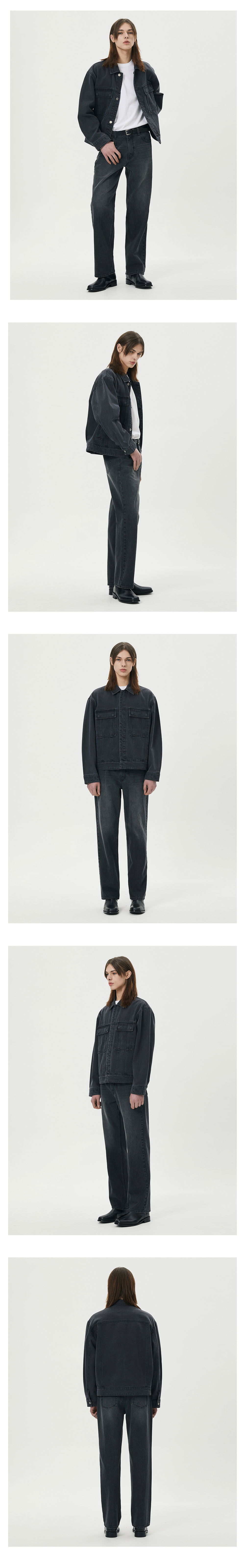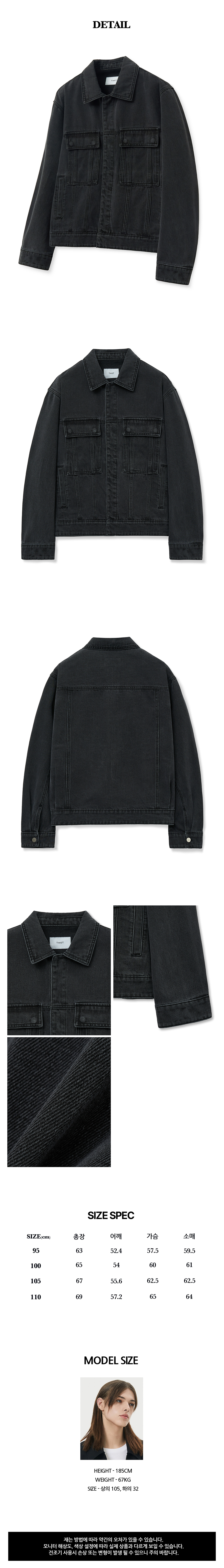 티엔지티 미니멀 데님 트러커 워시드블랙
