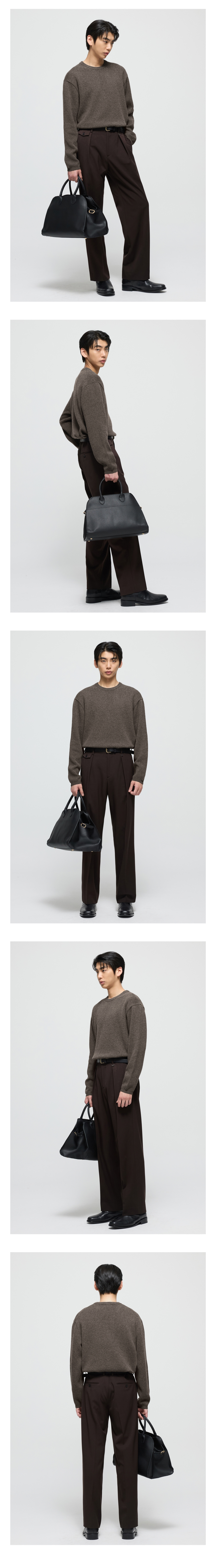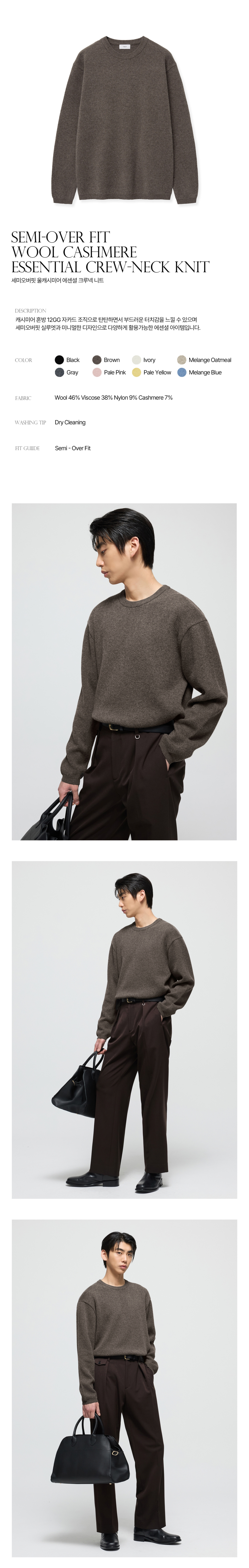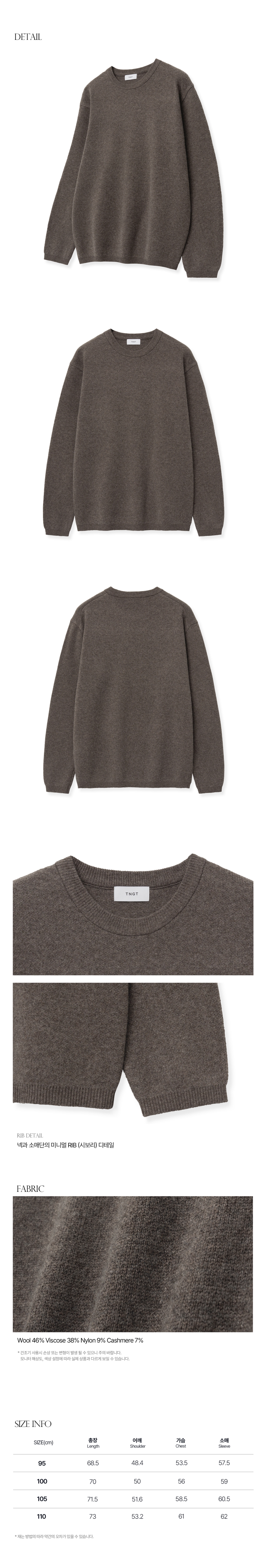 티엔지티 세미오버핏 울캐시미어 에센셜 크루넥 니트 브라운