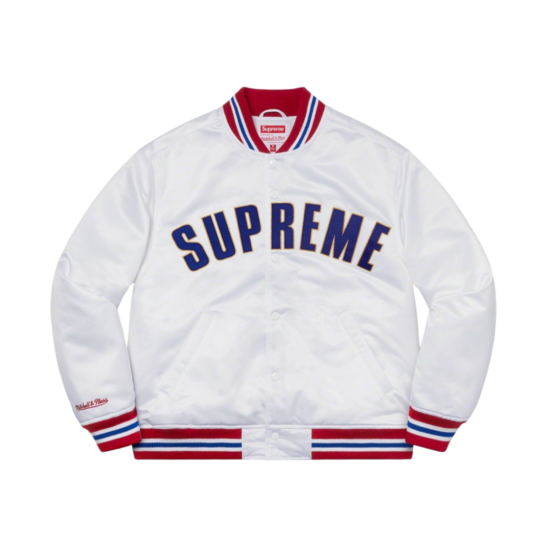 슈프림 미첼 & 네스 사틴 바시티 자켓 화이트 - 21SS