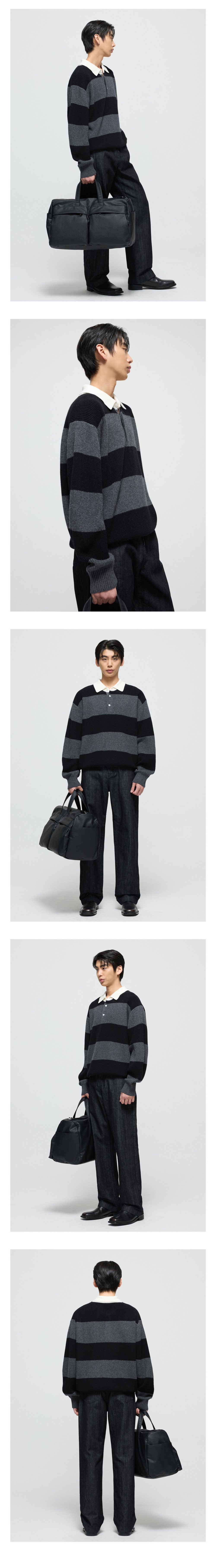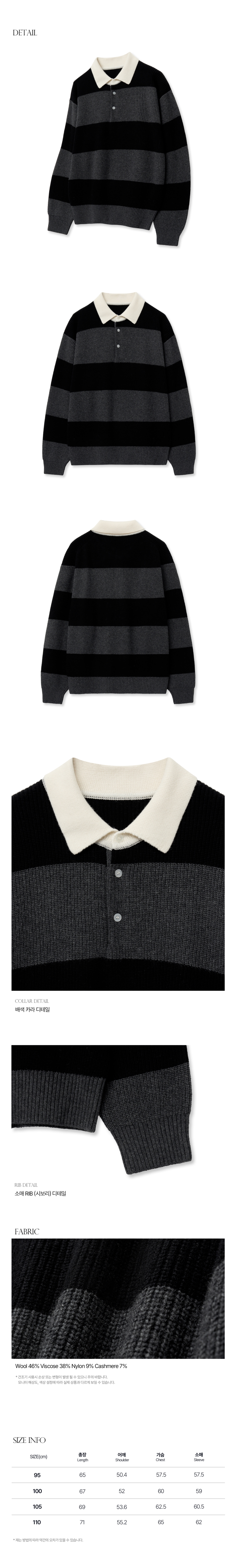티엔지티 오버핏 울 캐시미어 럭비 폴로 니트 블랙