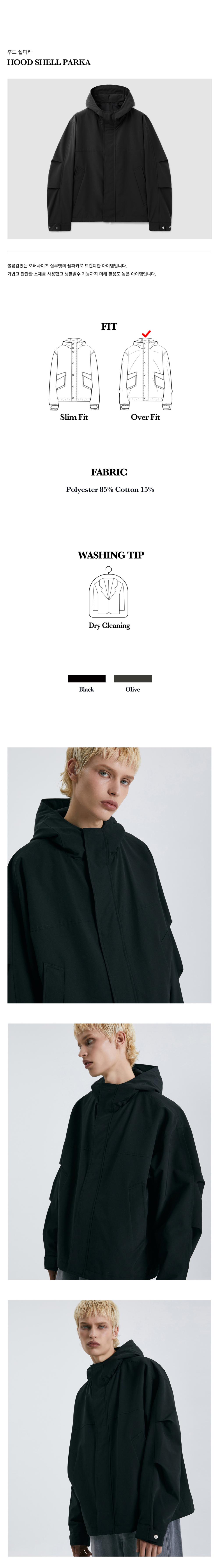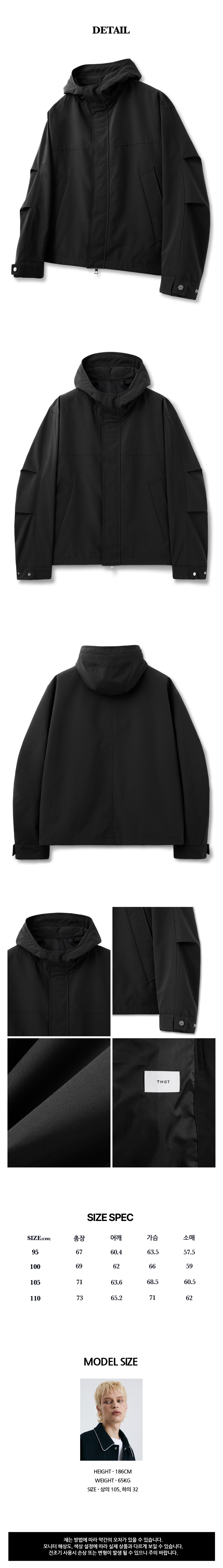 티엔지티 오버핏 후드 쉘파카 블랙