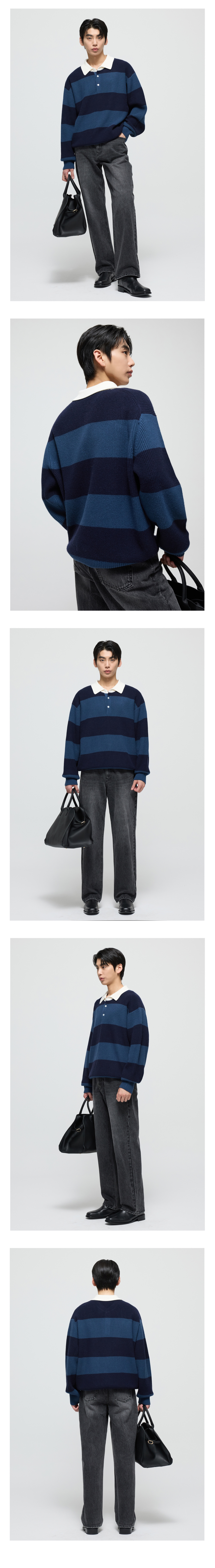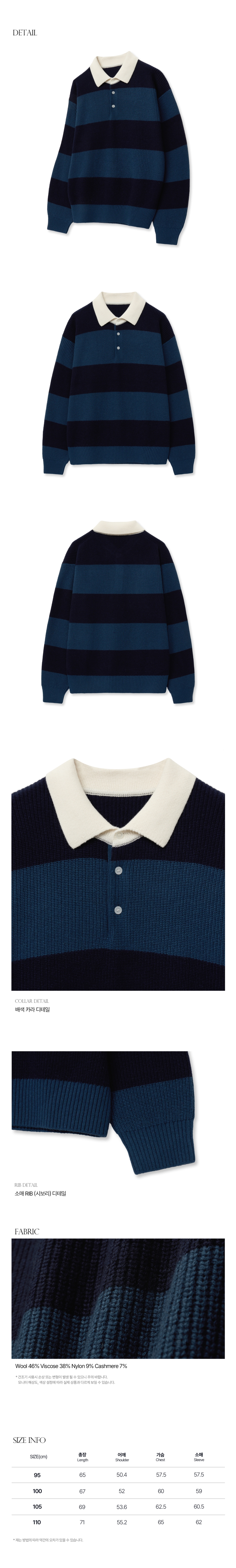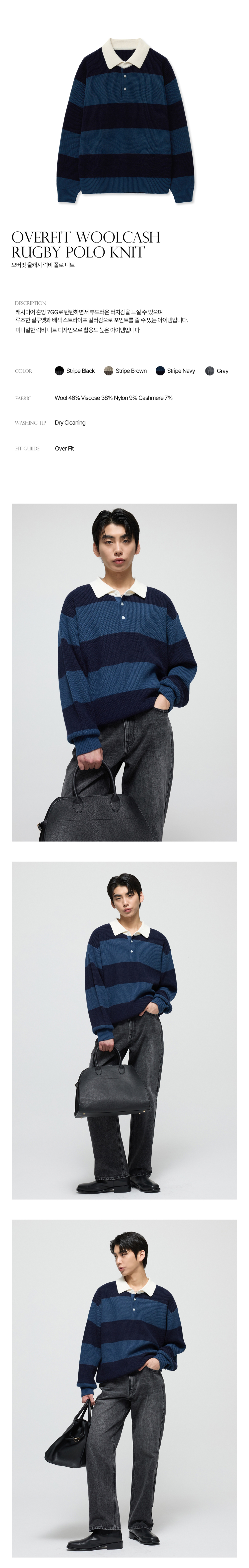 티엔지티 오버핏 울캐시 럭비 폴로 니트 네이비