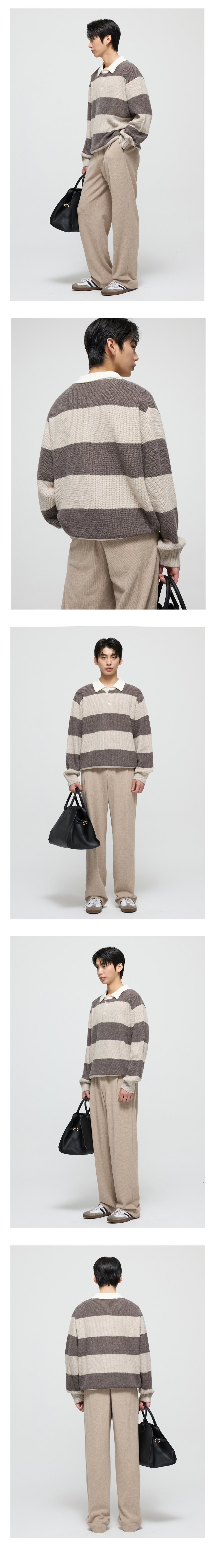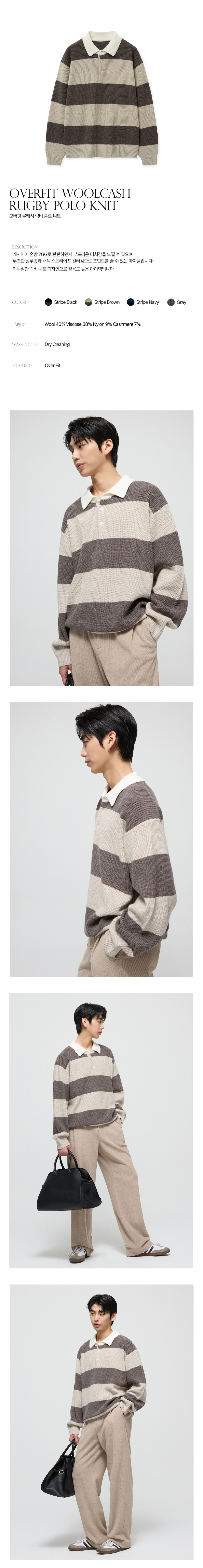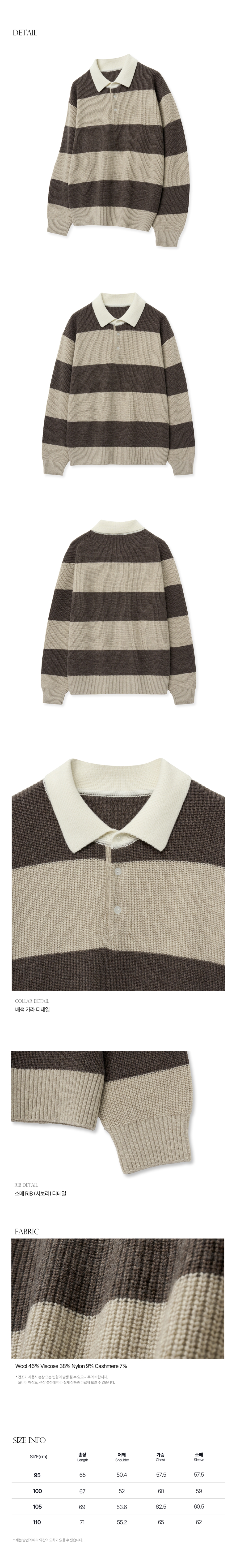 티엔지티 오버핏 울캐시 럭비 폴로 니트 브라운