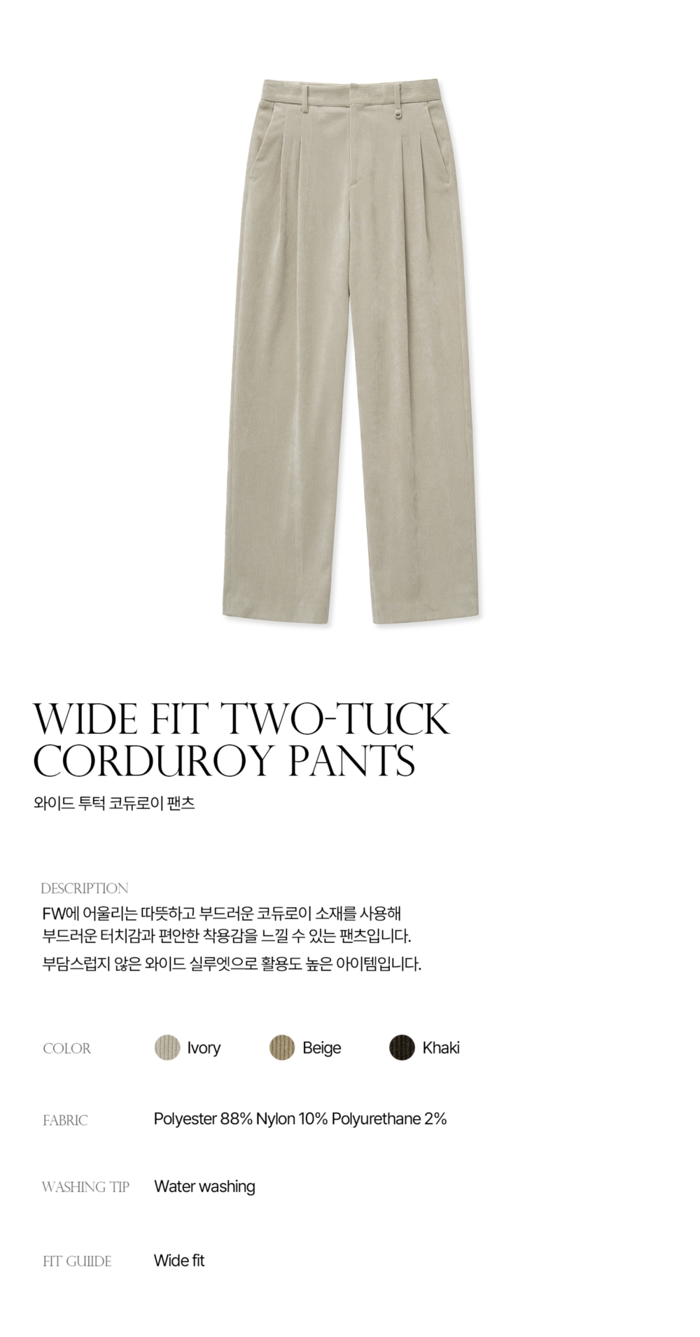 티엔지티 투턱 코듀로이 와이드 팬츠 아이보리
