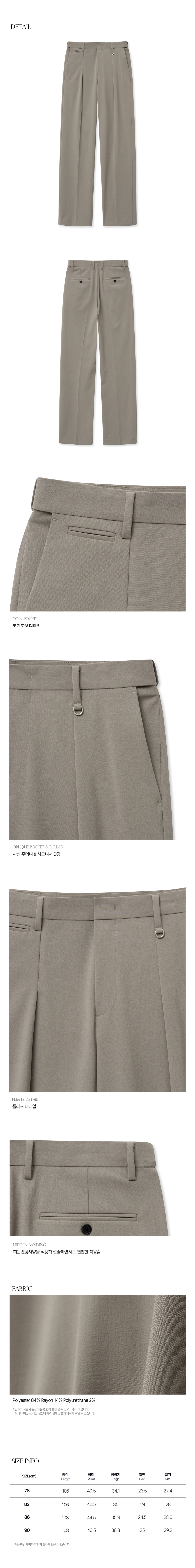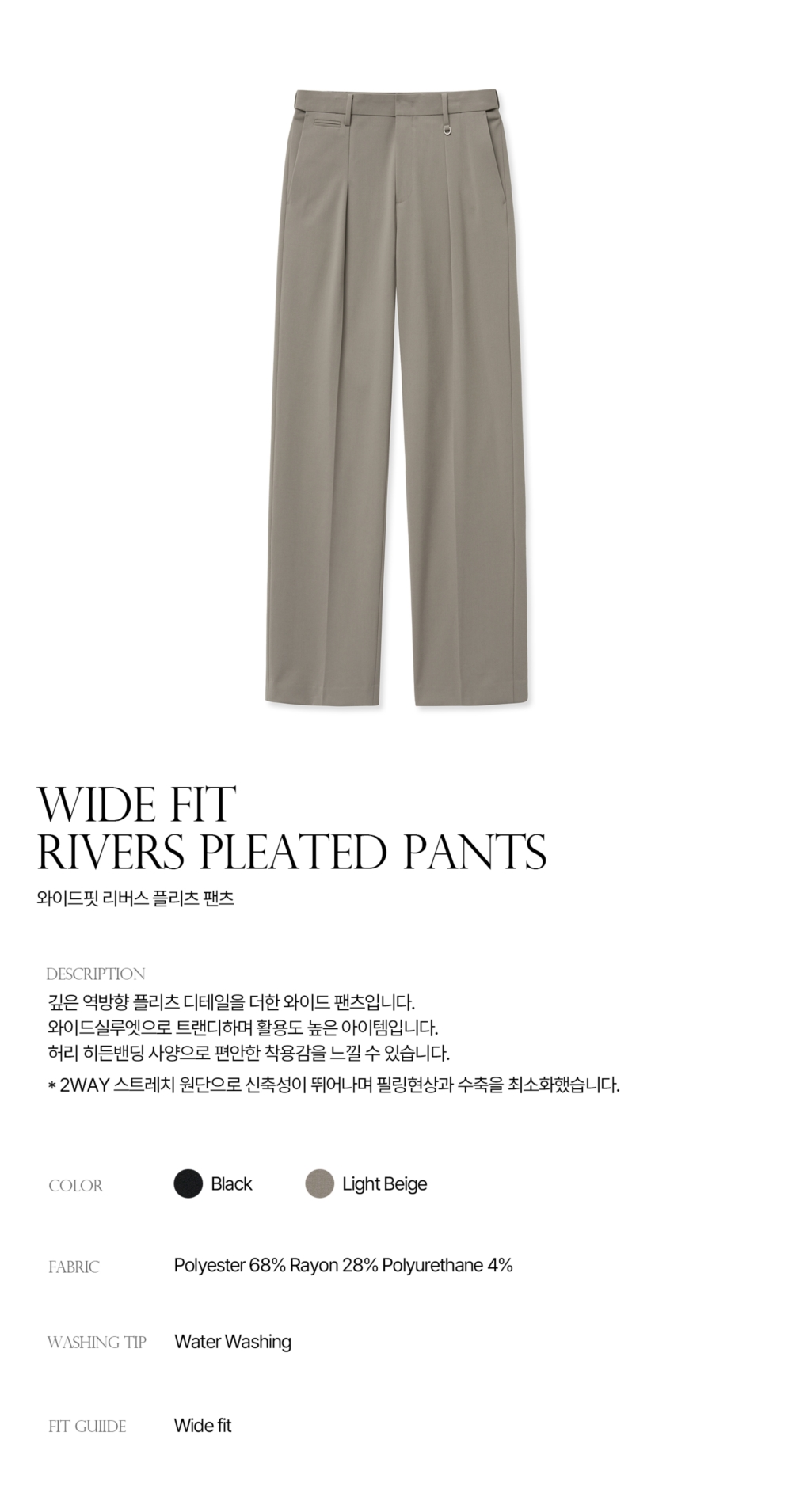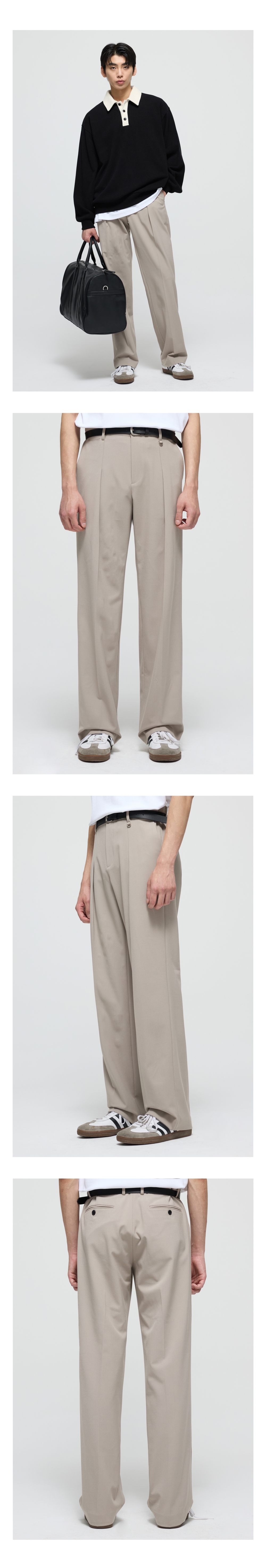 티엔지티 와이드핏 리버스 플리츠 팬츠 라이트베이지