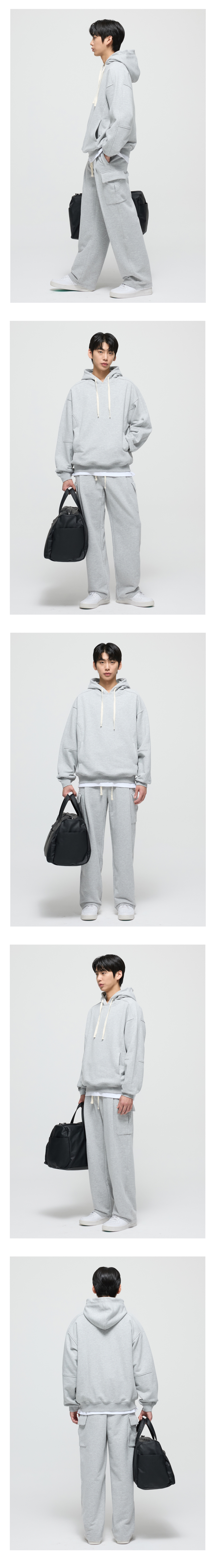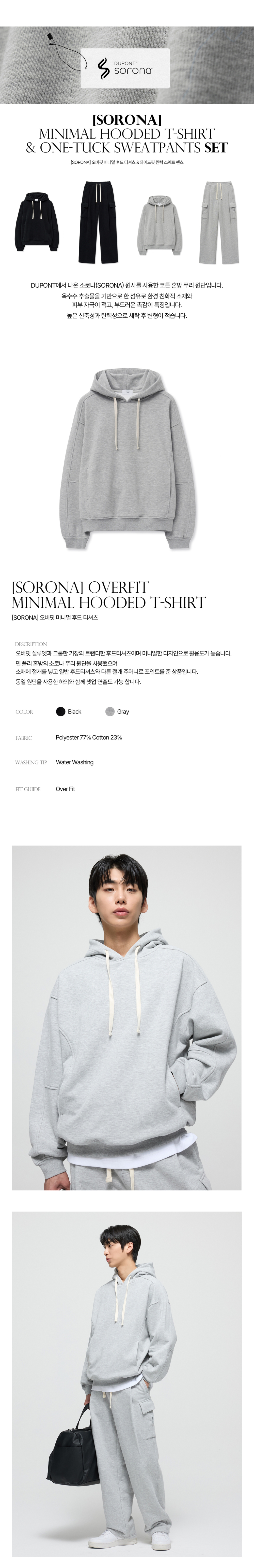 티엔지티 오버핏 미니멀 후드 티셔츠 멜란지그레이