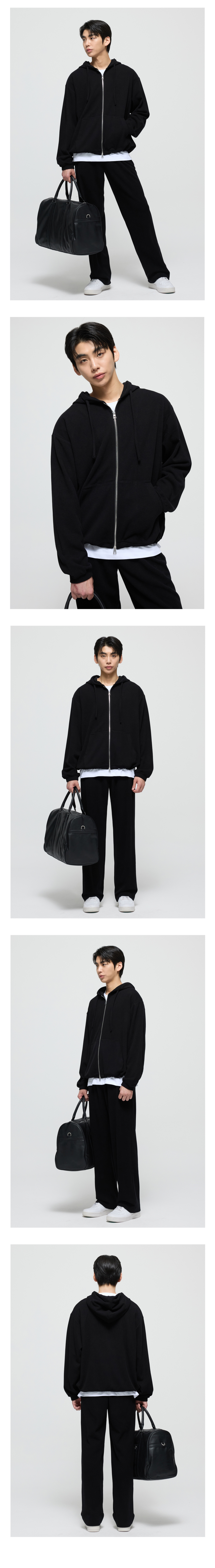TNGT Over-fit Knit Hood Zip-up Sweat Shirts Black