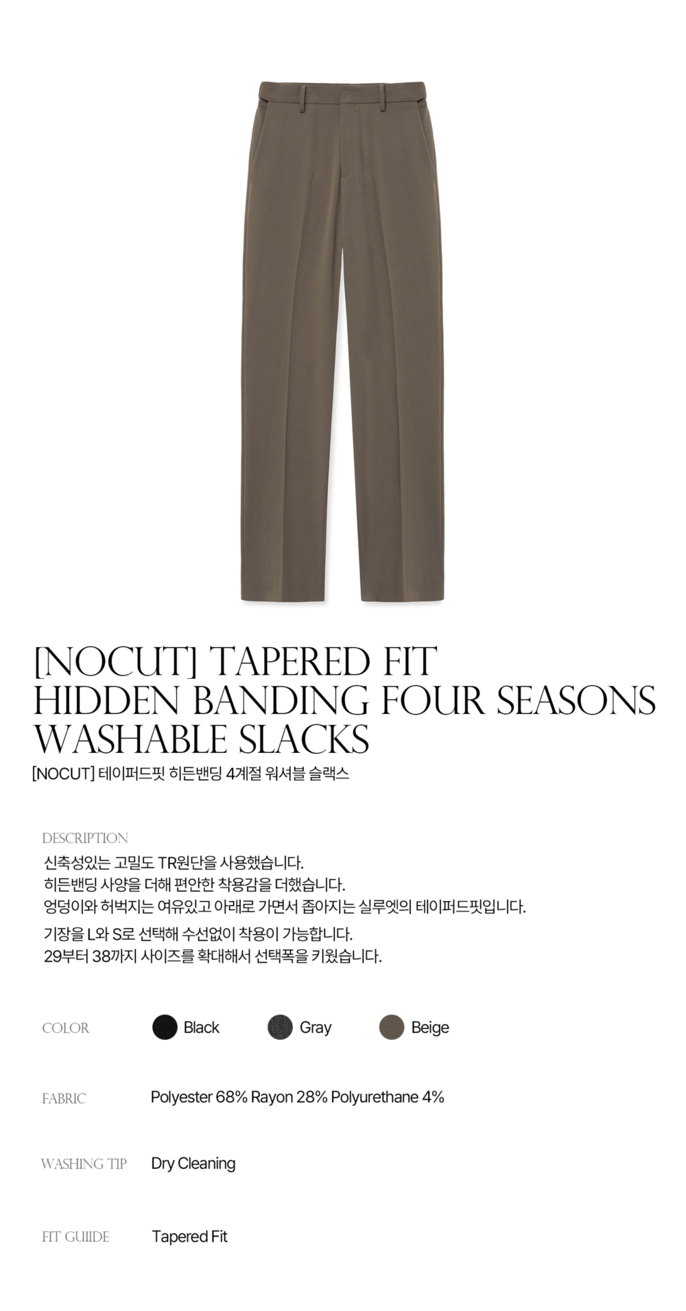 티엔지티 원턱 세미와이드 슬랙스 베이지