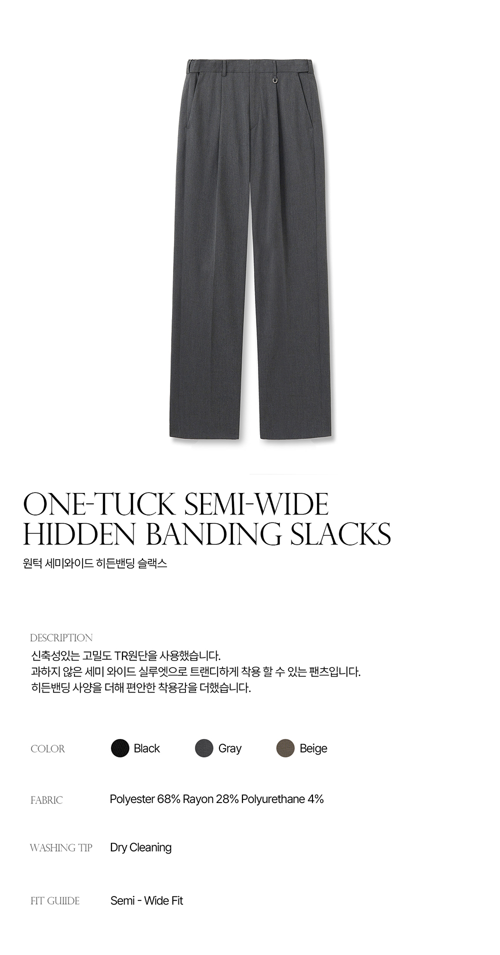 티엔지티 노컷 테이퍼드핏 히든밴딩 노턱 워셔블 슬랙스 그레이