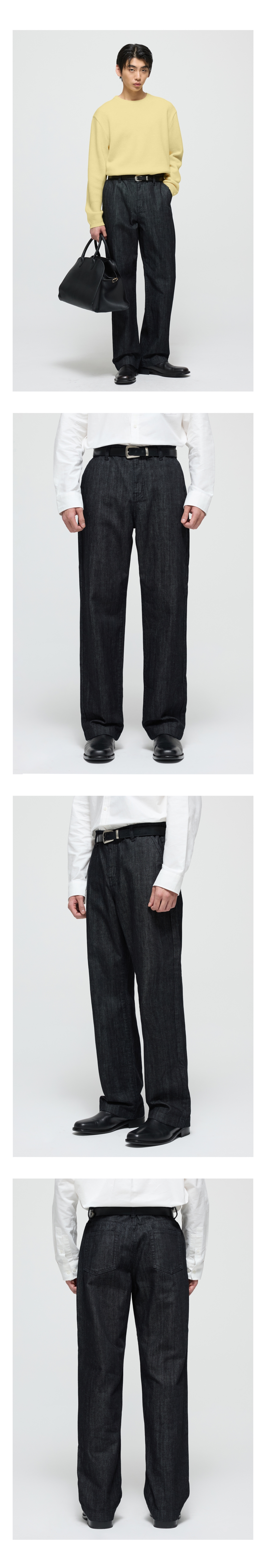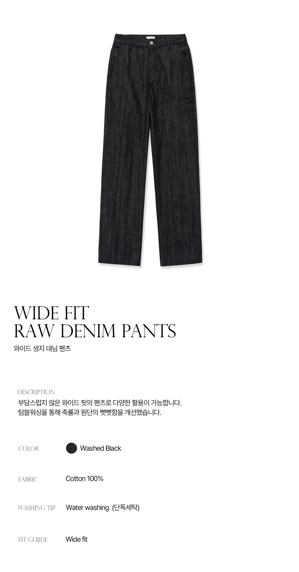 티엔지티 와이드 생지 데님 팬츠 워시드블랙