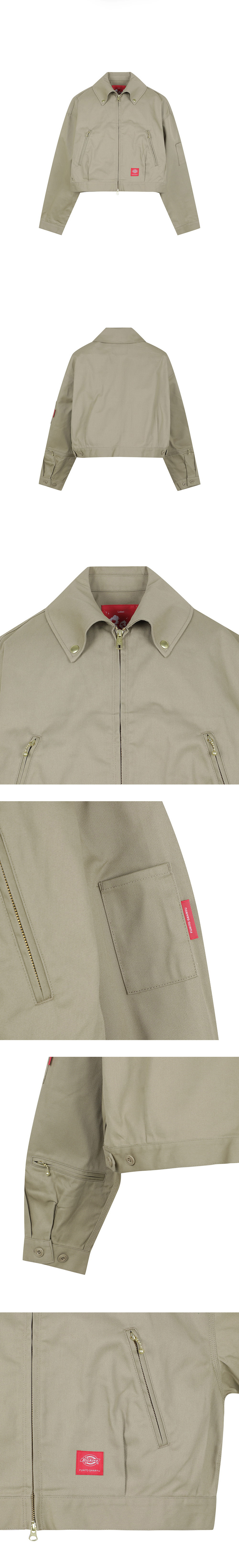디키즈의 아이젠하워 자켓을 변형시킨 후미토 간류의 아이젠하워 자켓입니다. - 디키즈와의 콜라보레이션 제품 - 기존 아이젠하워 자켓에서 기장은 축소, 소매와 칼라는 확대시킨 디자인 - 손을 뺄 수 있는 소매 지퍼 디테일 - 드롭 숄더 디자인 - 스프레드 칼라에 더해진 스냅 버튼 디테일 - 전면 투웨이 지퍼 클로징