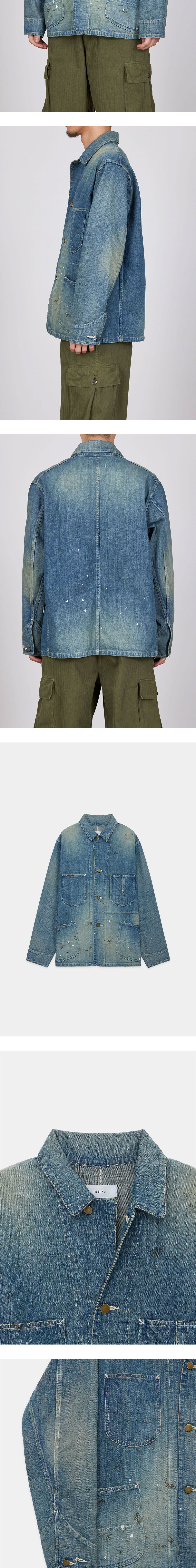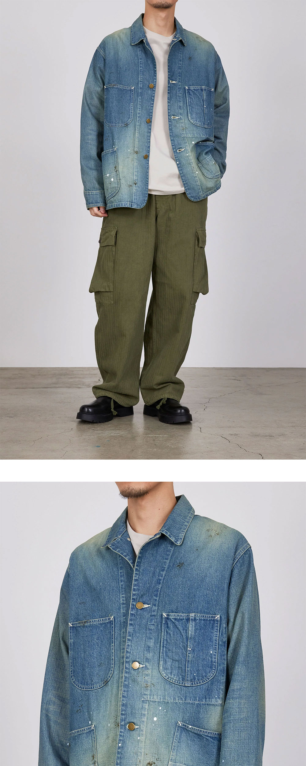 1940~50년대 커버롤을 각색한 마카의 커버롤입니다. - 다년간 착용한 느낌을 주기 위한 의도적인 빈티지 가공 - 10온즈의 튀르키예 유기농 코튼 데님 소재 - 불규칙한 원사 디테일