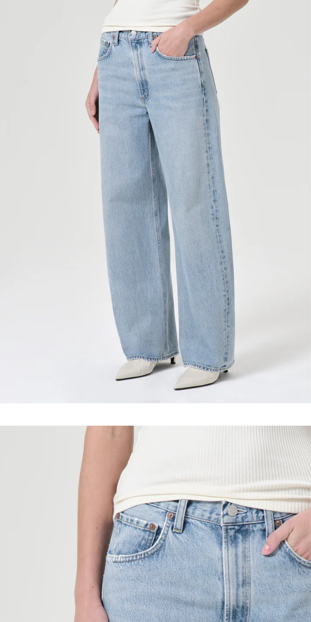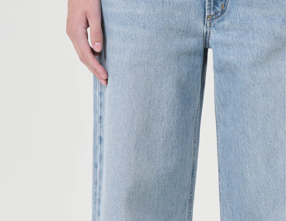 빈티지한 색감과 유려한 곡선의 실루엣이 매력적인 에이골디의 로우 커브 진입니다. - 미드웨이스트 디자인 - 아웃심에 적용된 약간의 커브로 세련된 실루엣 연출 가능