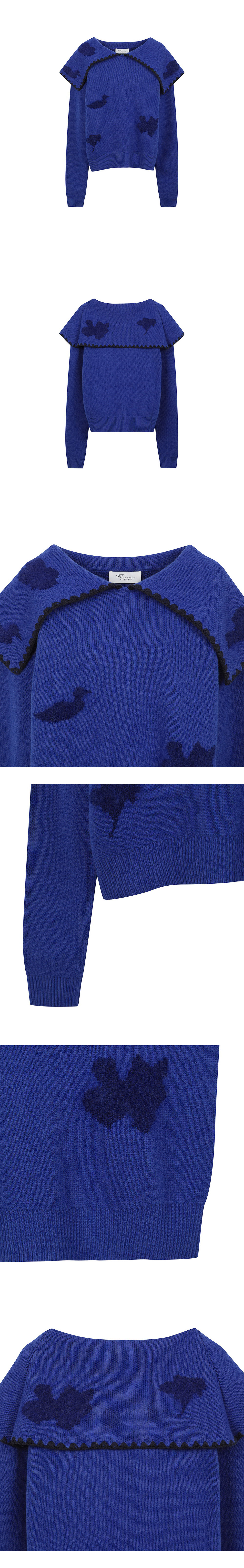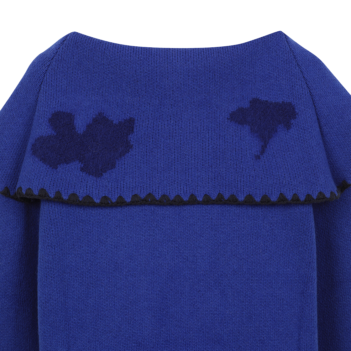 Caroline Hu Women Wool Floral Shadow Polo Blue - 24FW