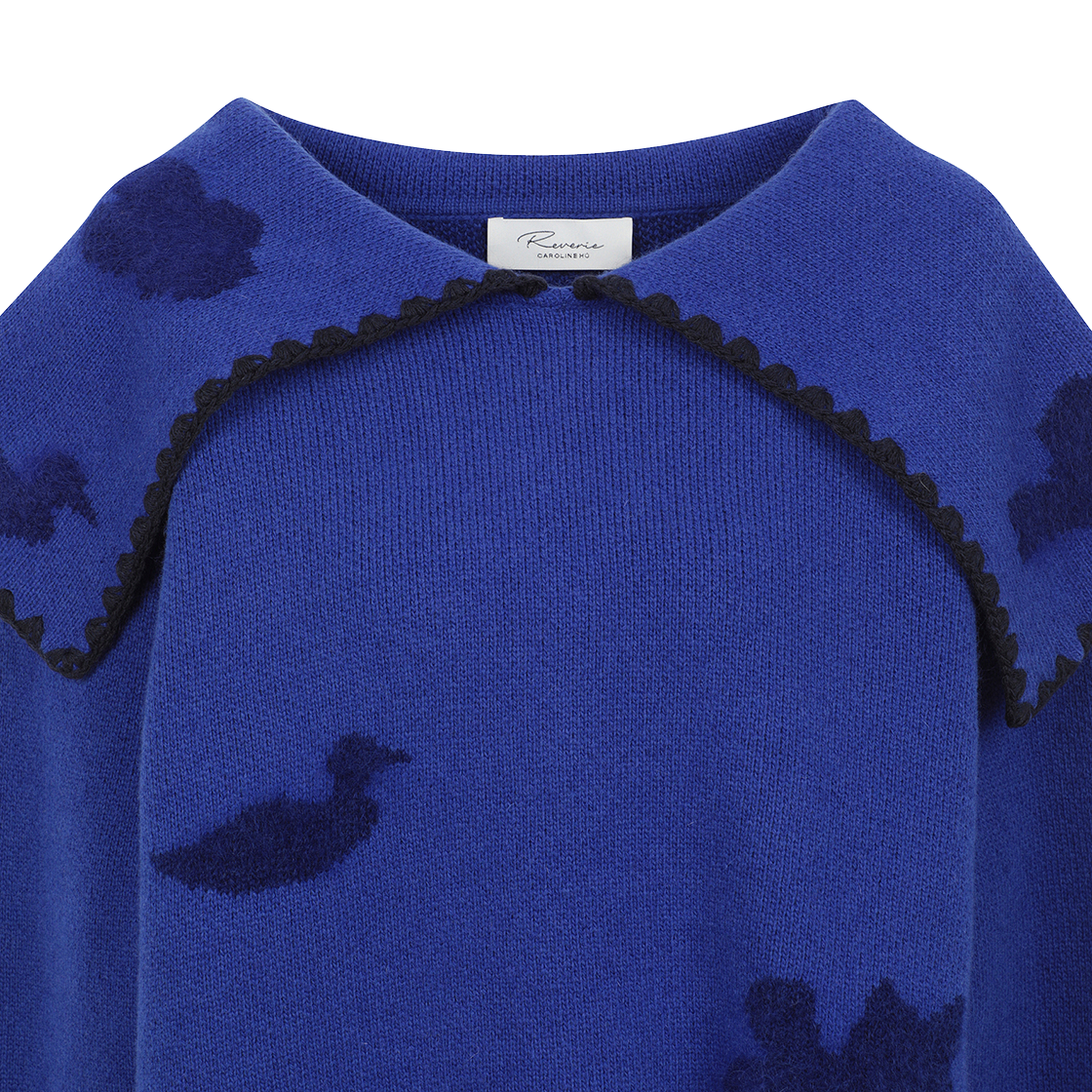 캐롤라인 후 우먼 울 플로럴 쉐도우 폴로 블루 - 24FW