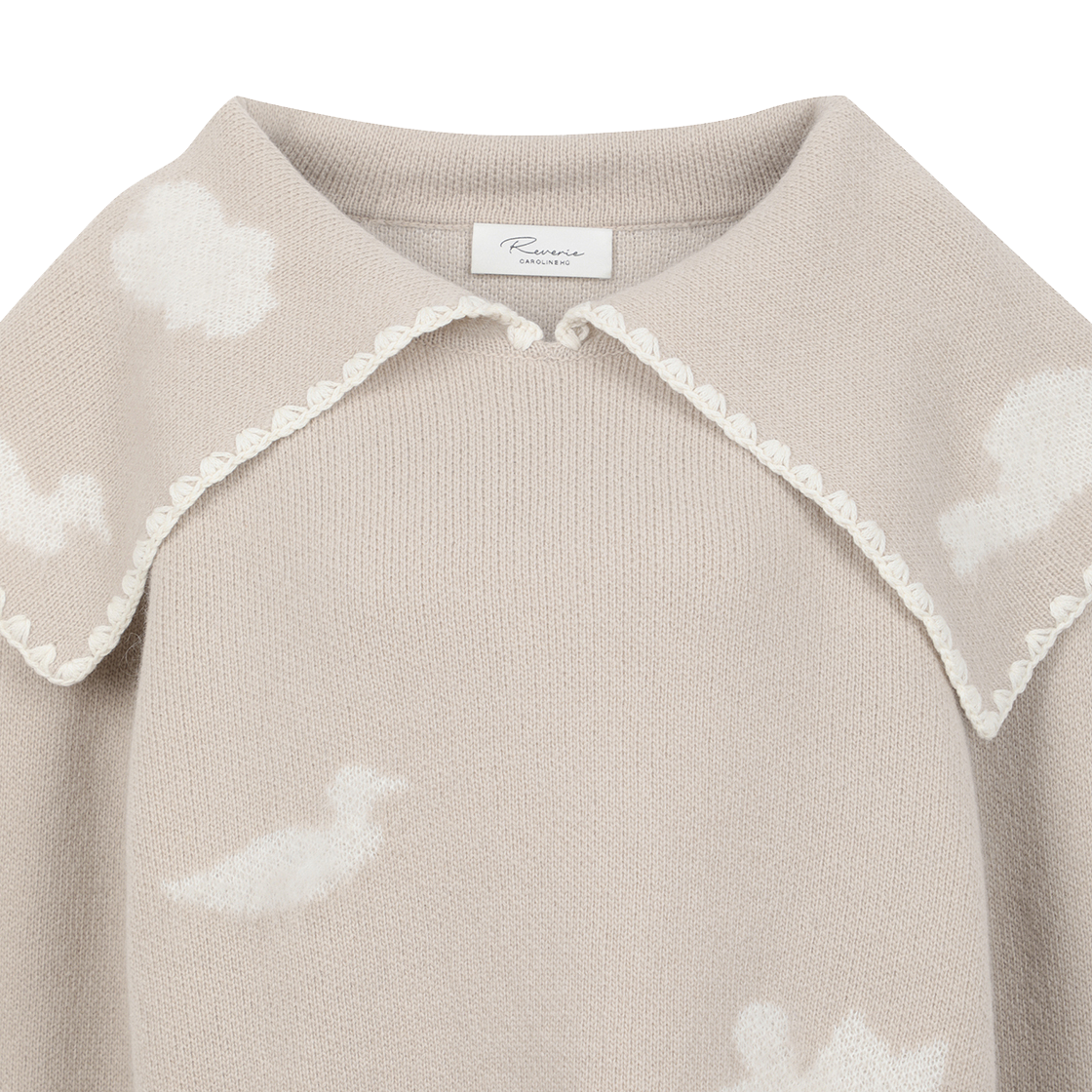 캐롤라인 후 우먼 울 플로럴 쉐도우 폴로 베이지 - 24FW